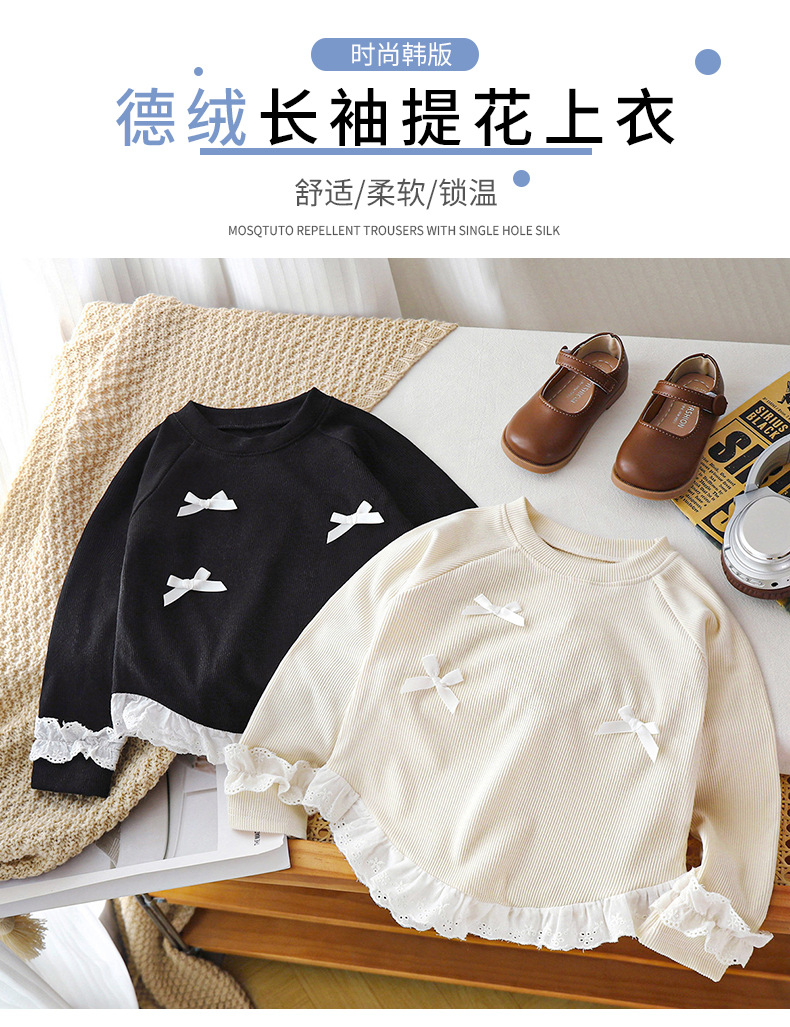 Детская термофутболка для девочек, весна-осень 2025, с длинным рукавом, с бантом, в корейском стиле, модный топ для девочек, детская одежда