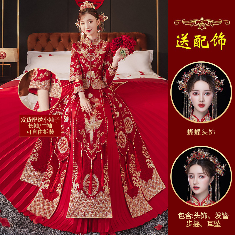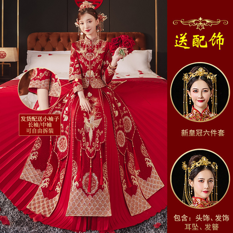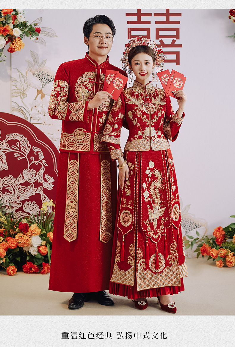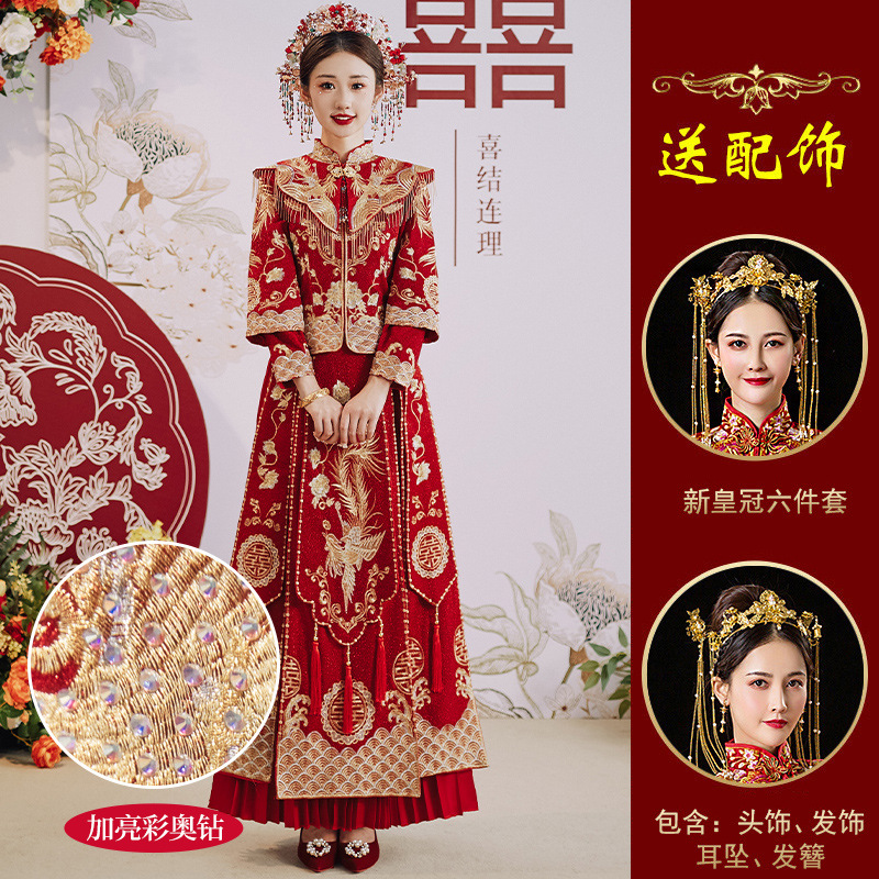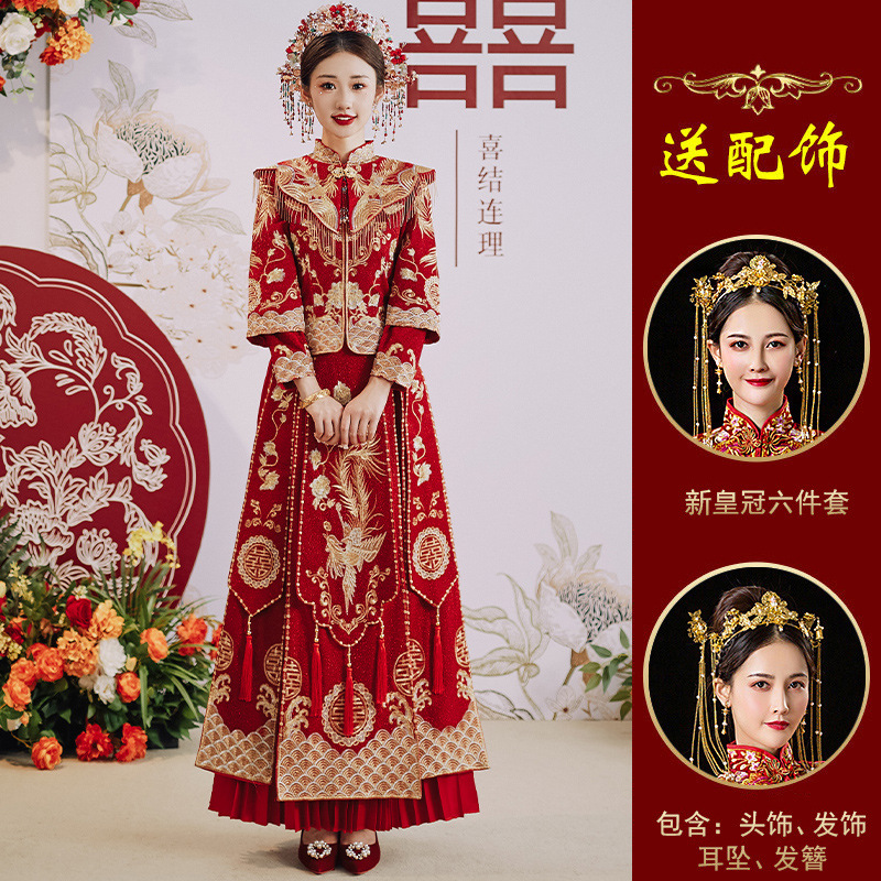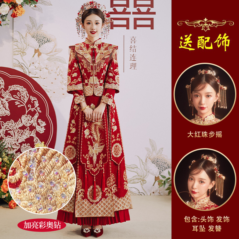 Костюм Xiuhe 2025, новое свадебное платье в китайском стиле для миниатюрных невест, платье с драконом и фениксом, свадебное платье для пары Xiuhe больших размеров.