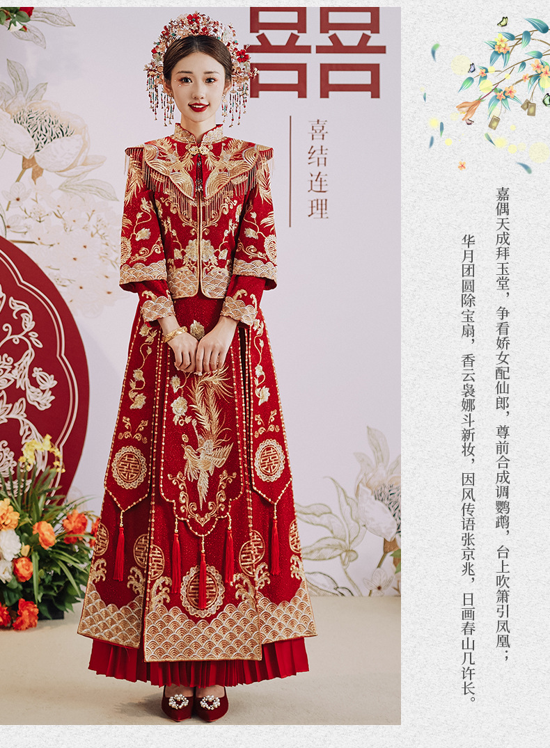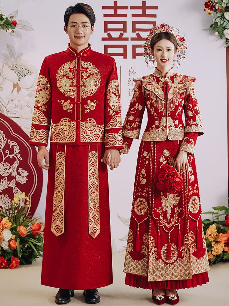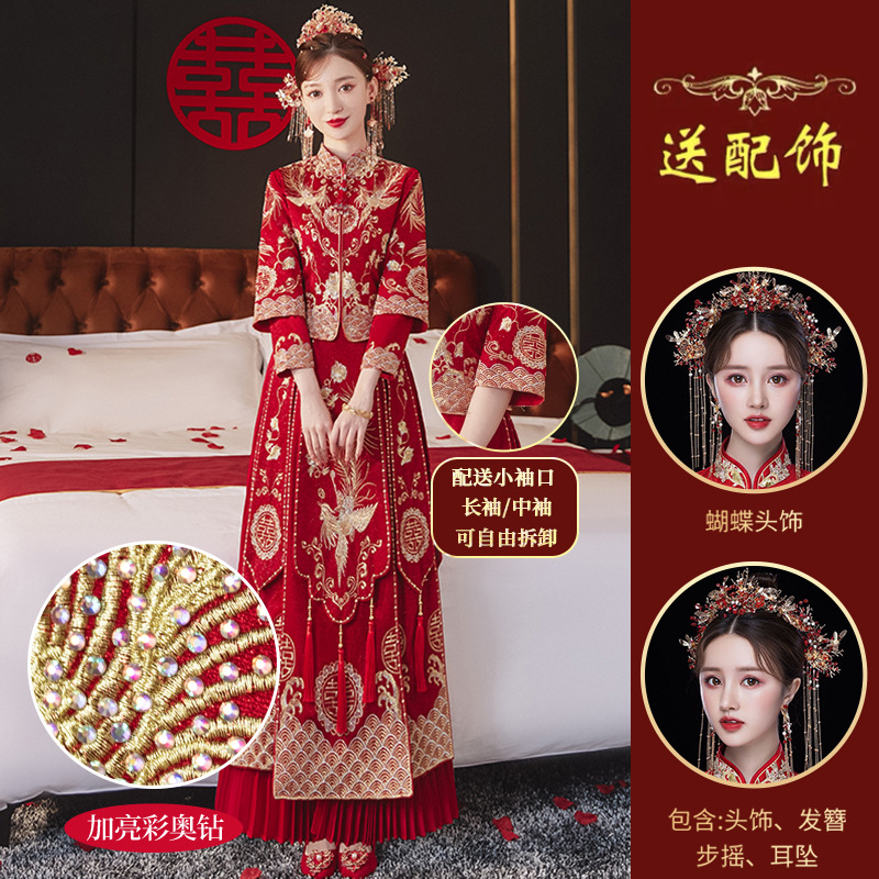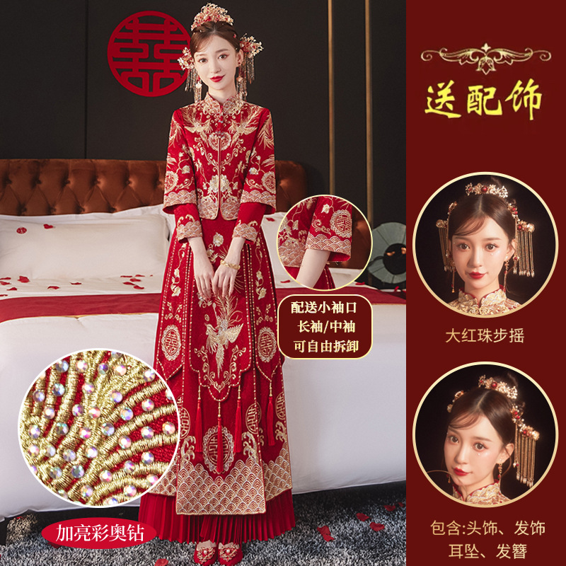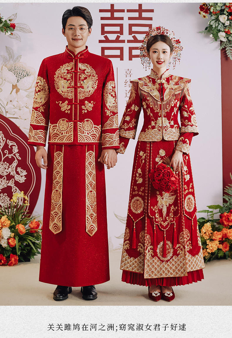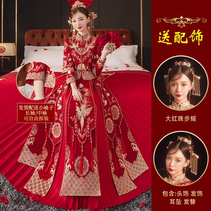 Костюм Xiuhe 2025, новое свадебное платье в китайском стиле для миниатюрных невест, платье с драконом и фениксом, свадебное платье для пары Xiuhe больших размеров.