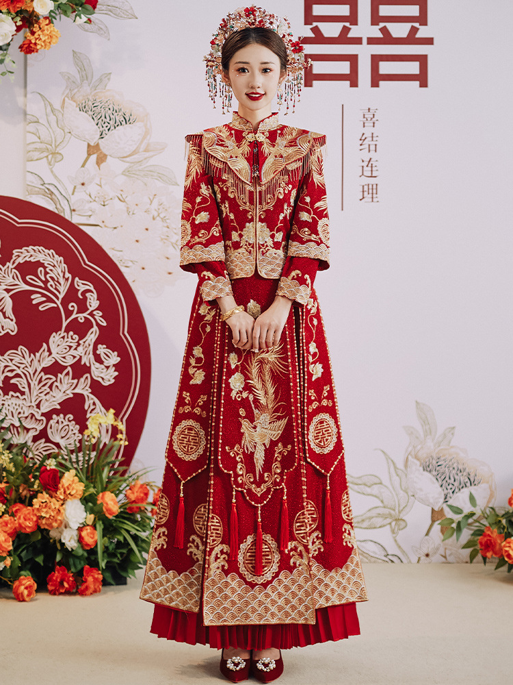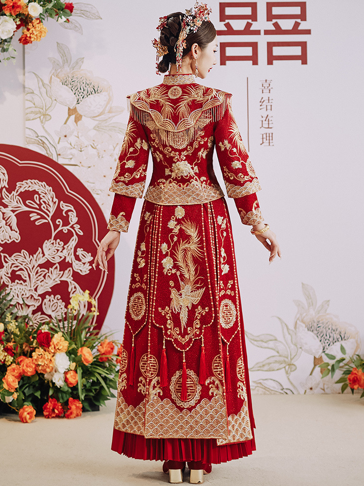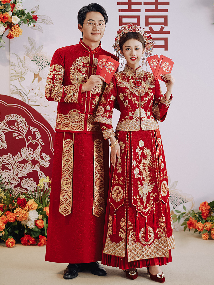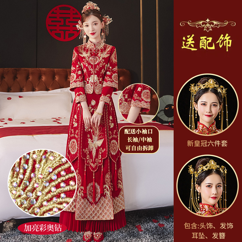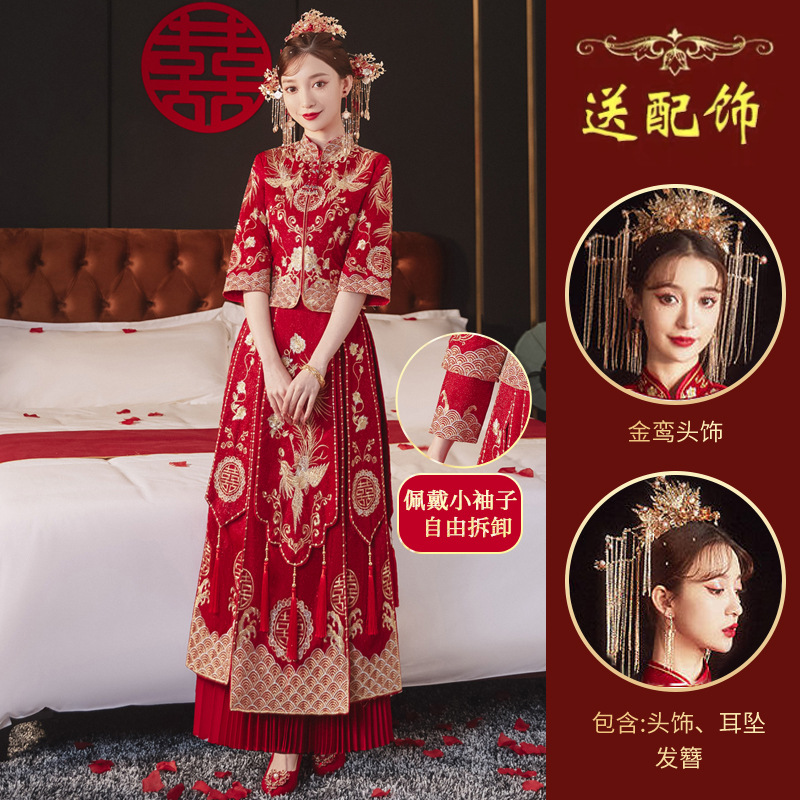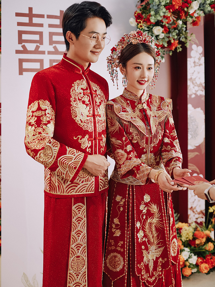 Костюм Xiuhe 2025, новое свадебное платье в китайском стиле для миниатюрных невест, платье с драконом и фениксом, свадебное платье для пары Xiuhe больших размеров.