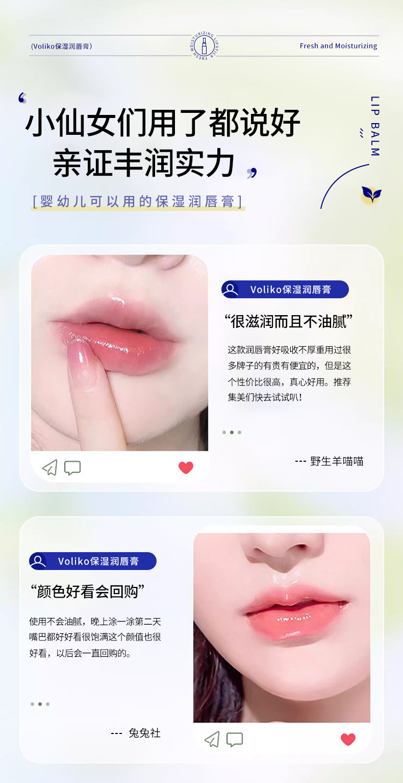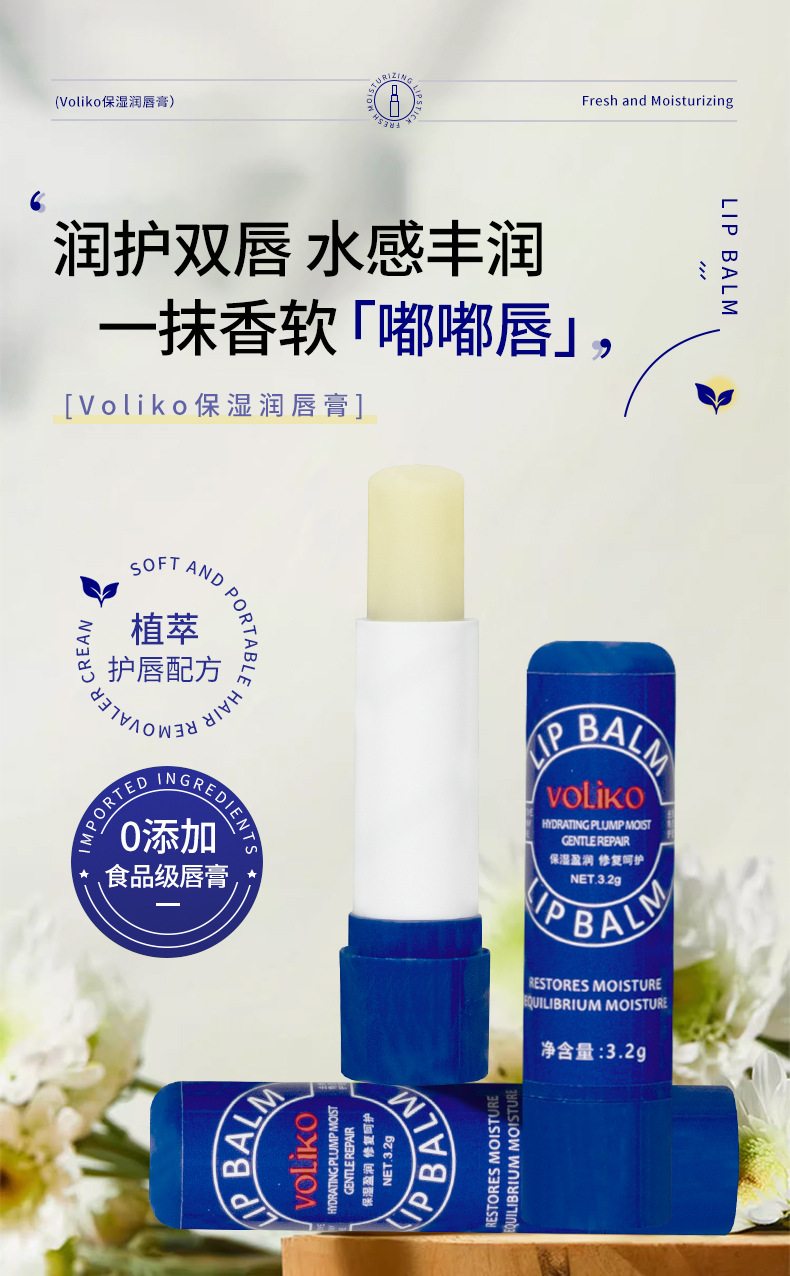 Бальзам для губ Voliko в маленькой синей баночке, увлажняющий, питательный, восстанавливающий, оптовая продажа от производителя, популярный товар, хит продаж