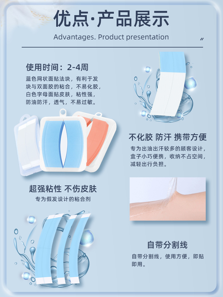 Клейкая пленка для париков, клейкая лента для замещения волос, двусторонняя лента, устойчивая к поту, дышащая, легкая, приятная для кожи, гипоаллергенная, дышащая лента от производителя