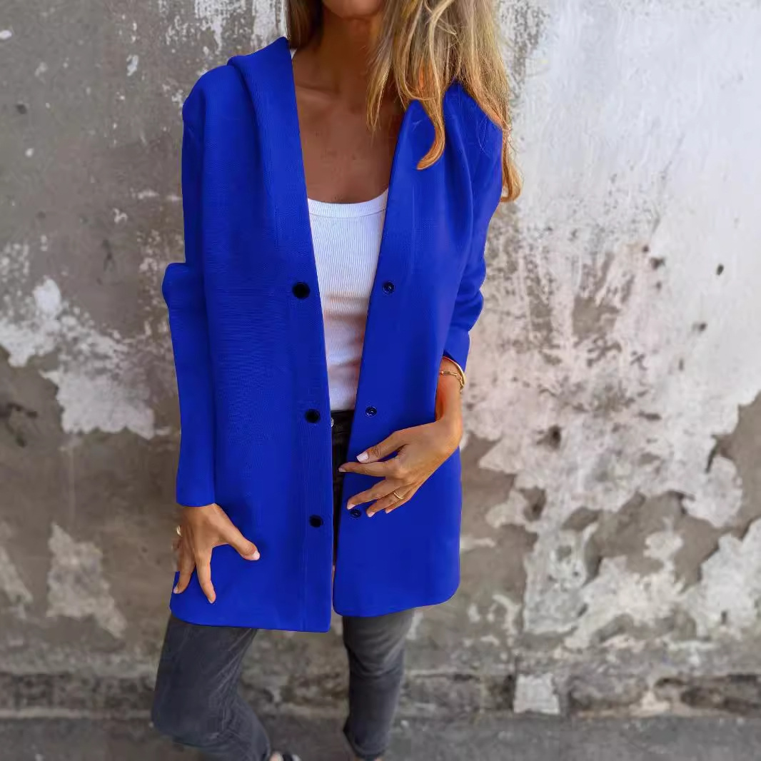 2024 Amazon AliExpress Independent Station _ Осень и зима сплошные повседневные однобортные куртки с капюшоном