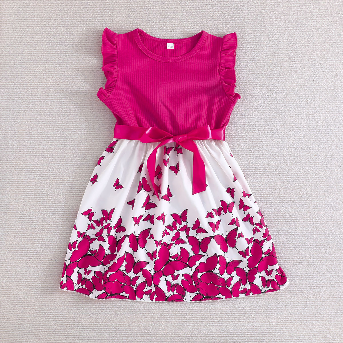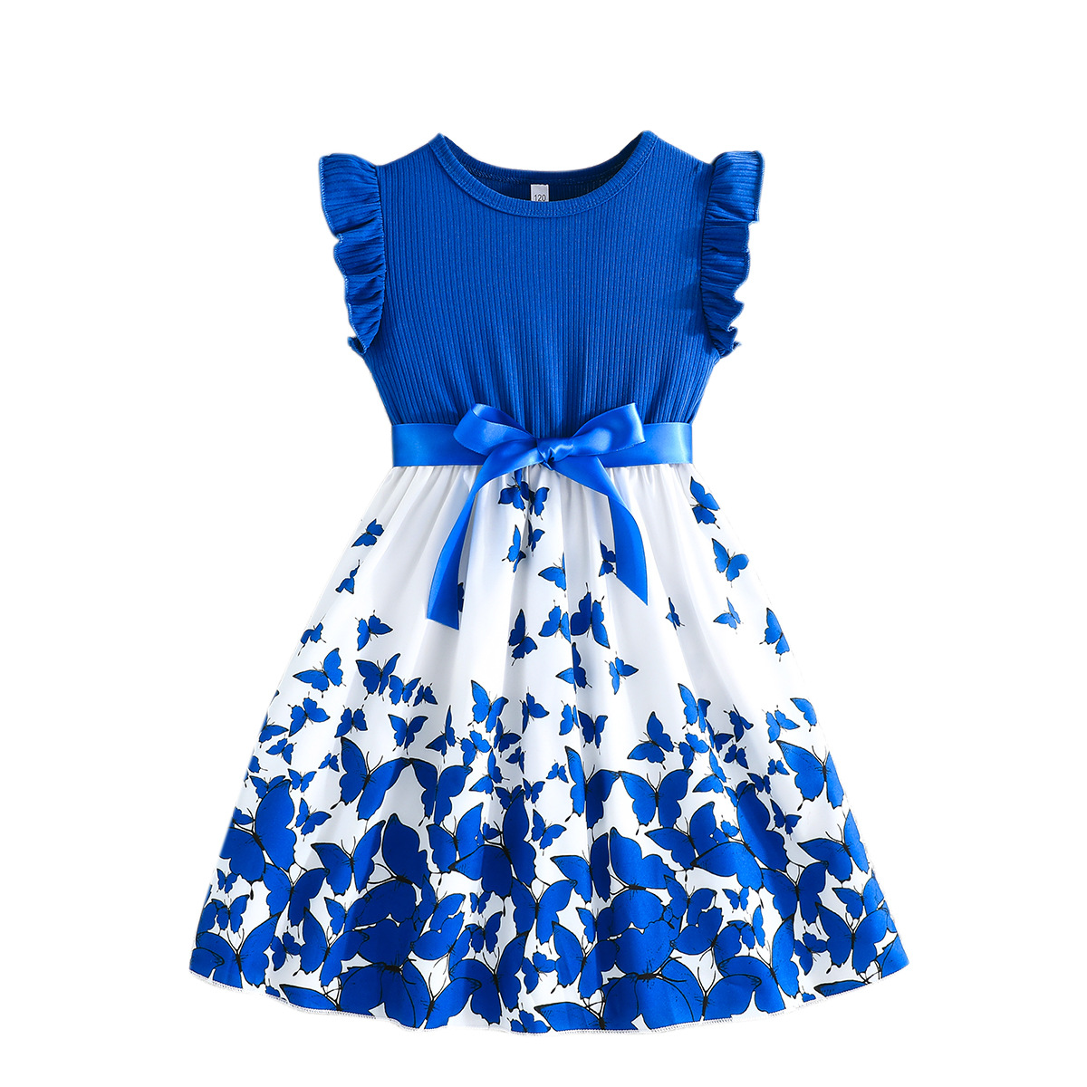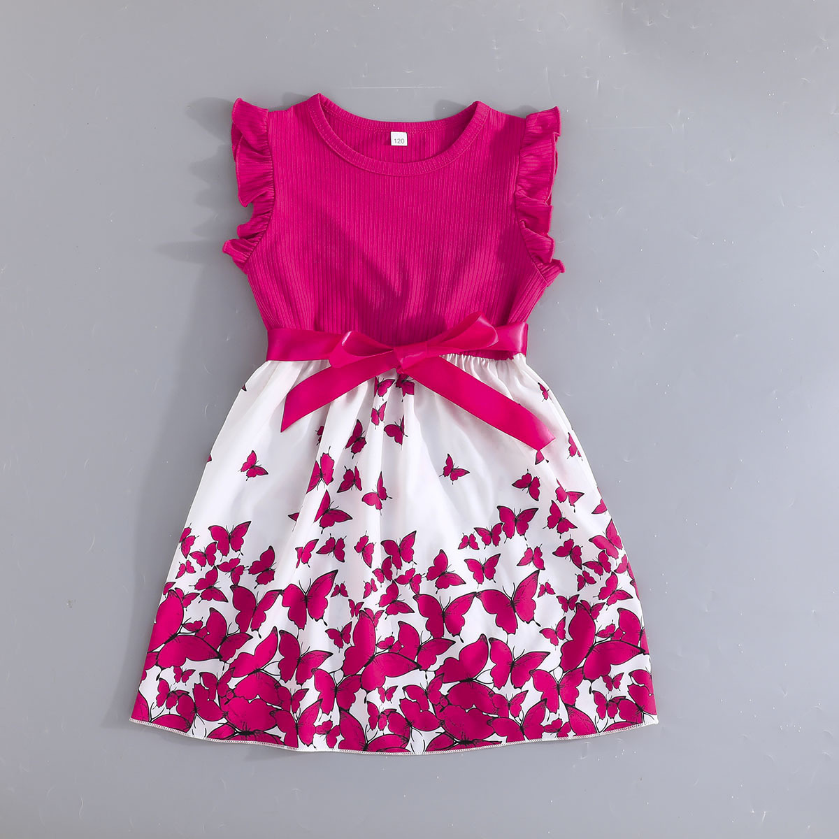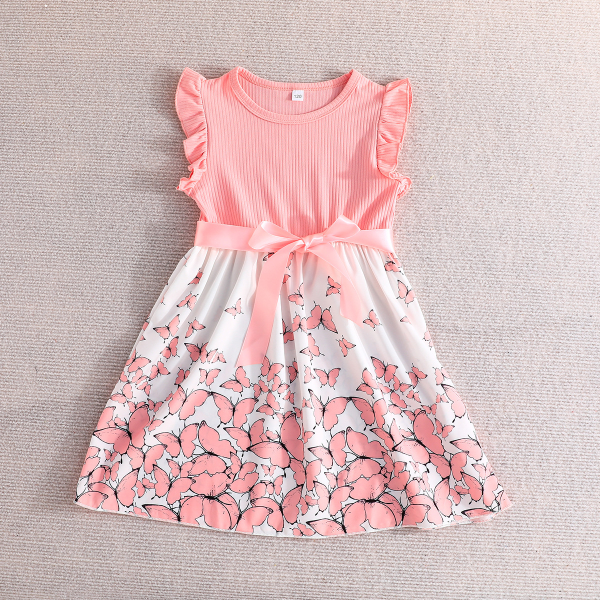 Летнее новое платье для девочек с принтом бабочек и однотонное ребристое платье без рукавов с рюшами + пояс, комплект из 2 предметов