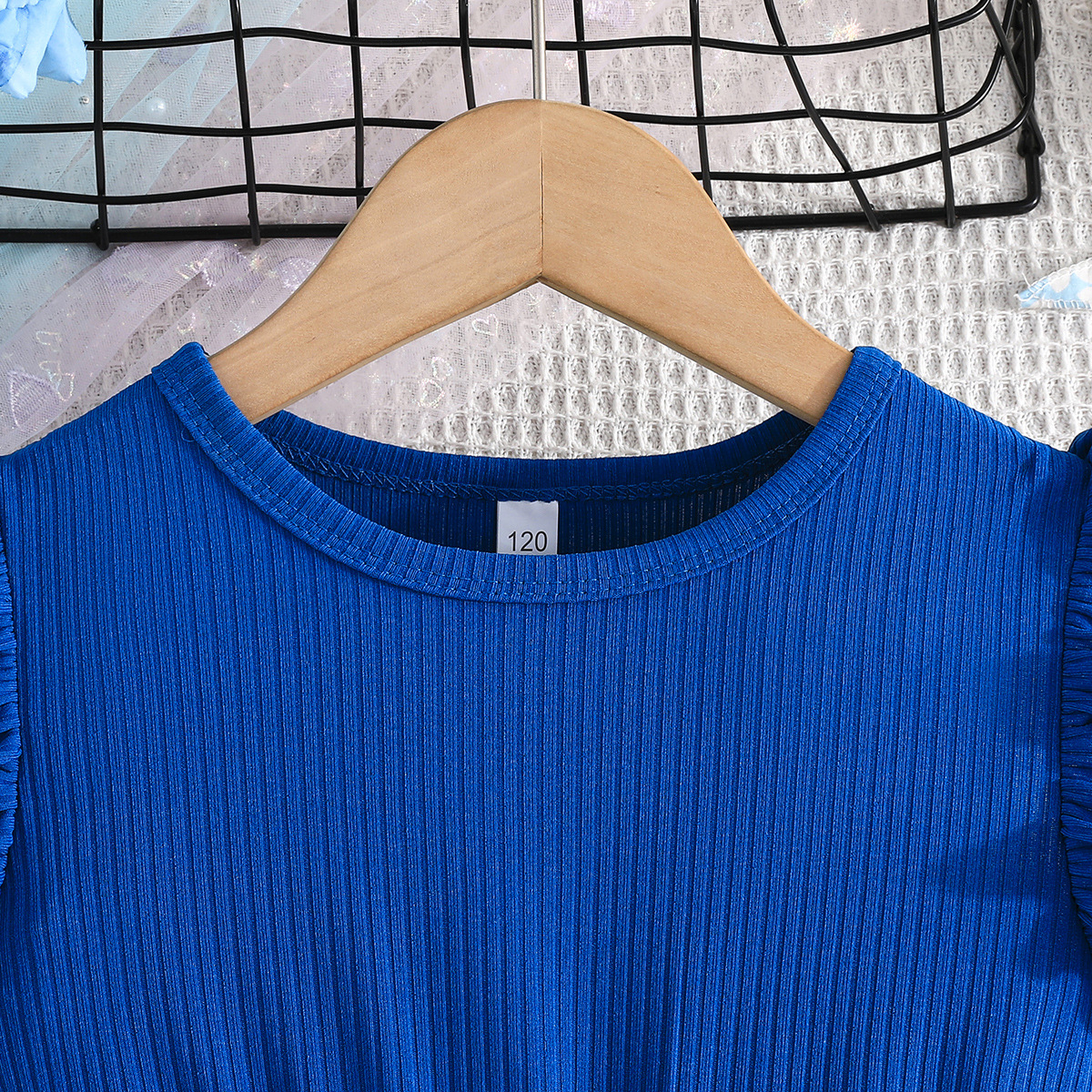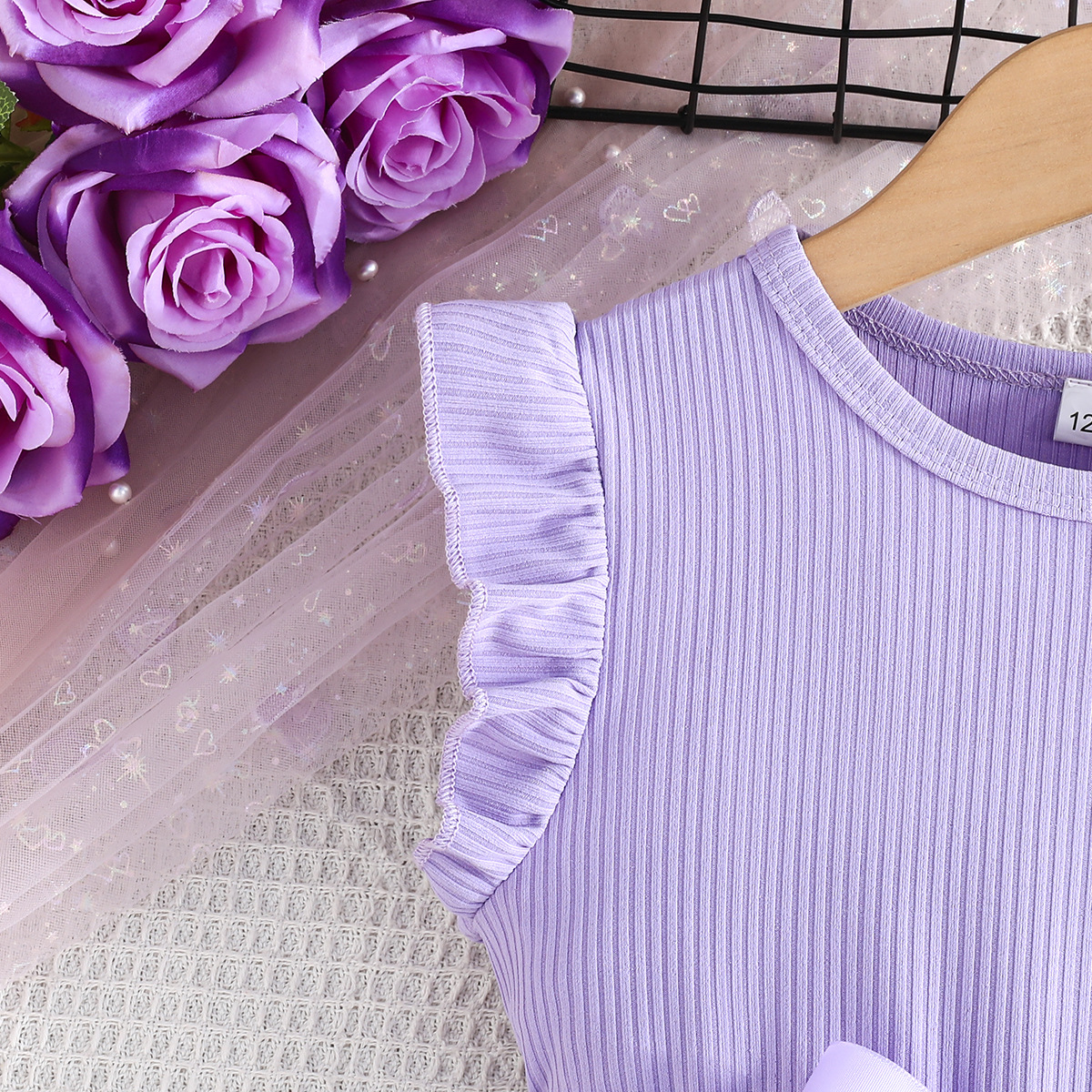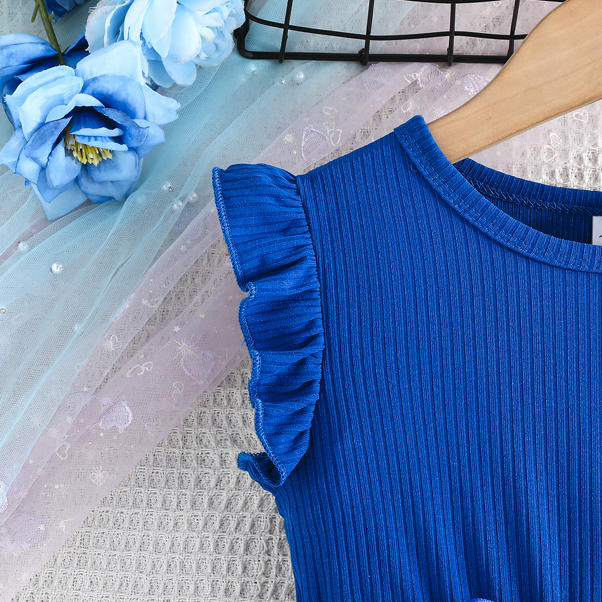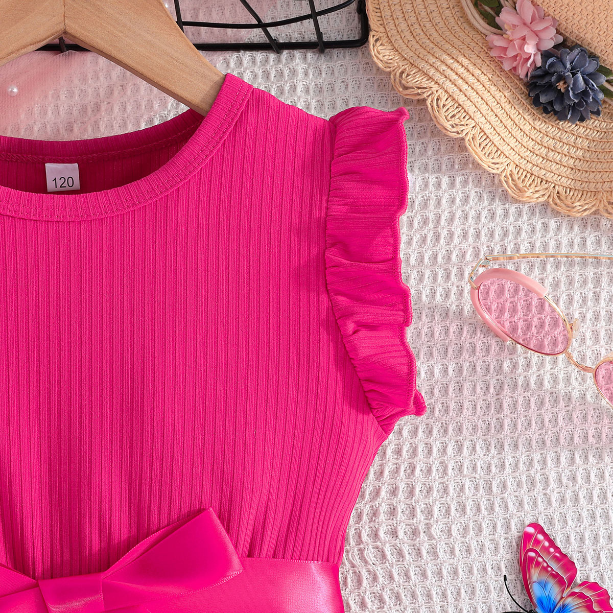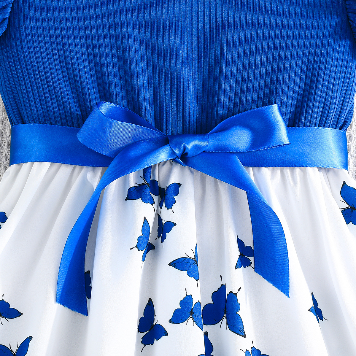 Летнее новое платье для девочек с принтом бабочек и однотонное ребристое платье без рукавов с рюшами + пояс, комплект из 2 предметов