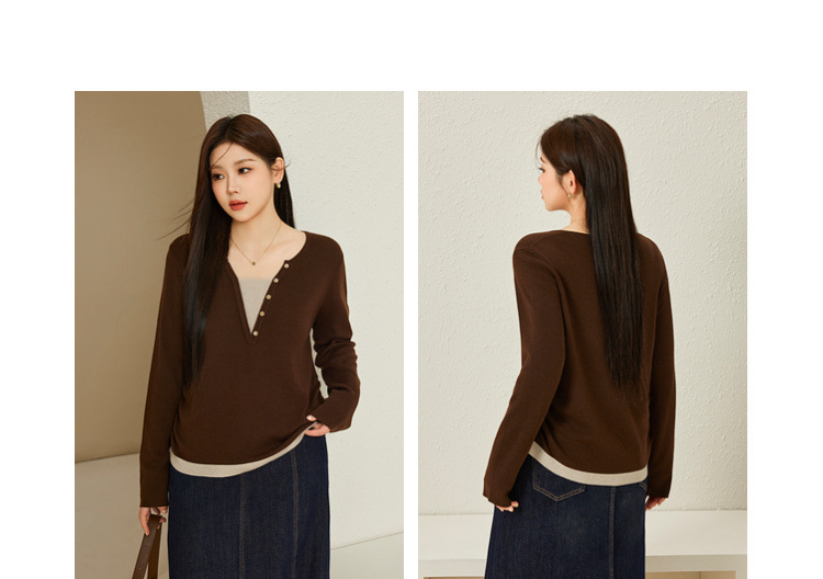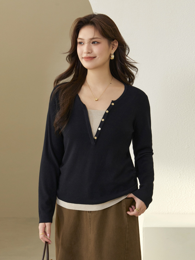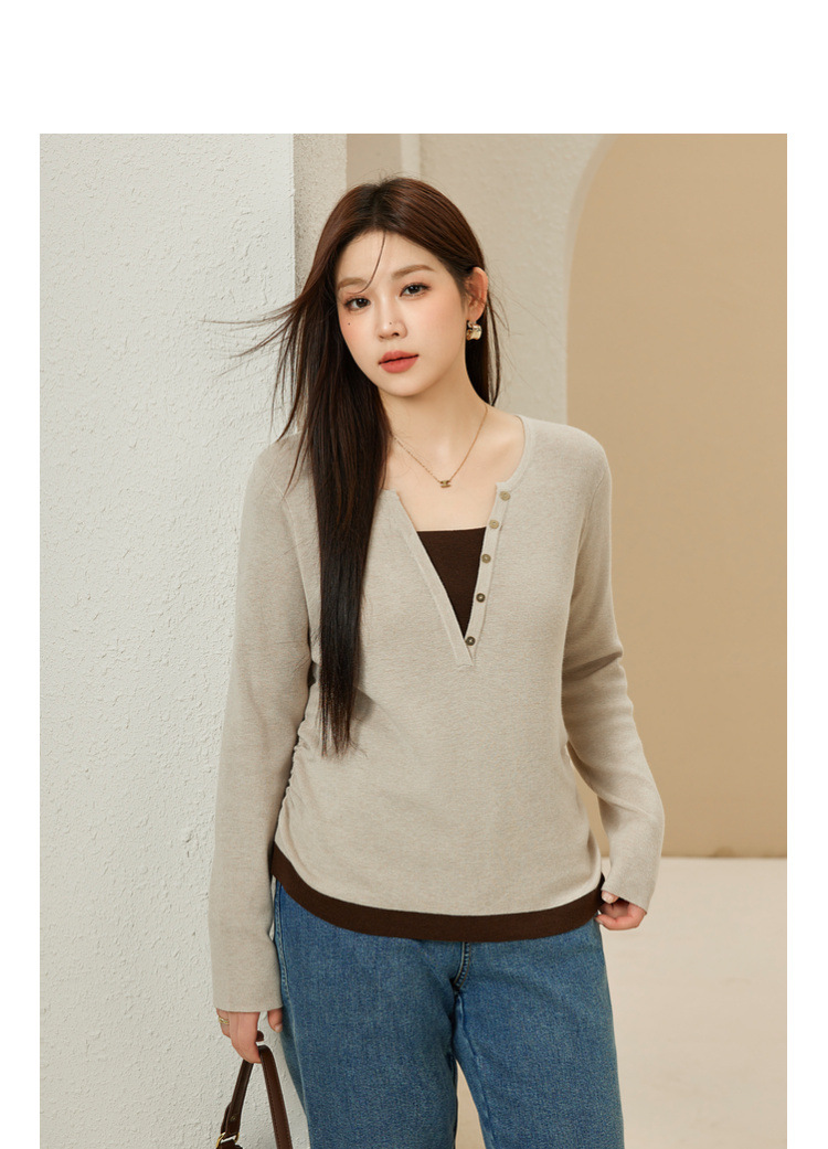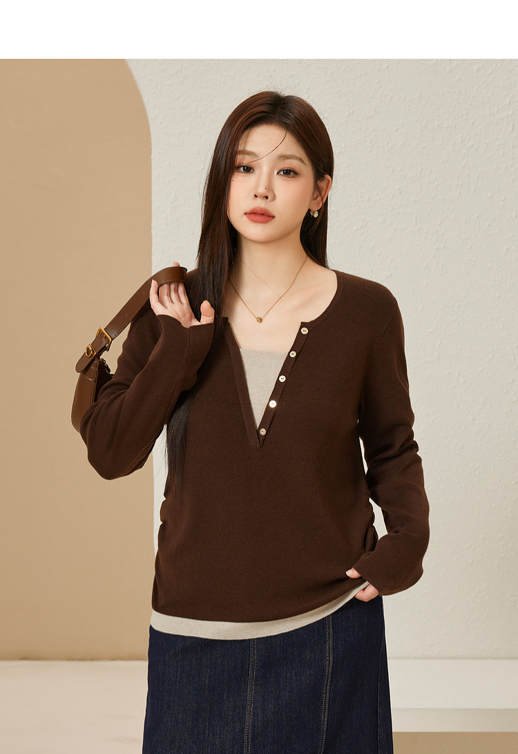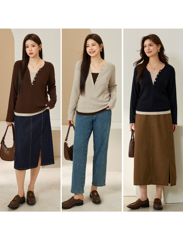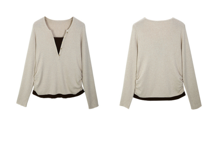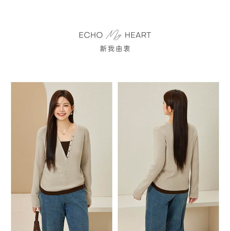 Цветное шоу большой размер женской одежды нежный темперамент, поддельные две тонкие дикие свитера жирный mm2024 осенний новый