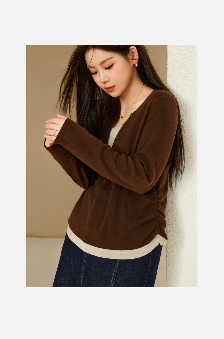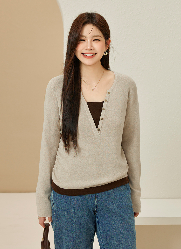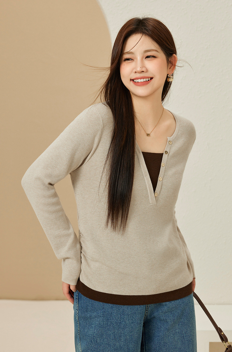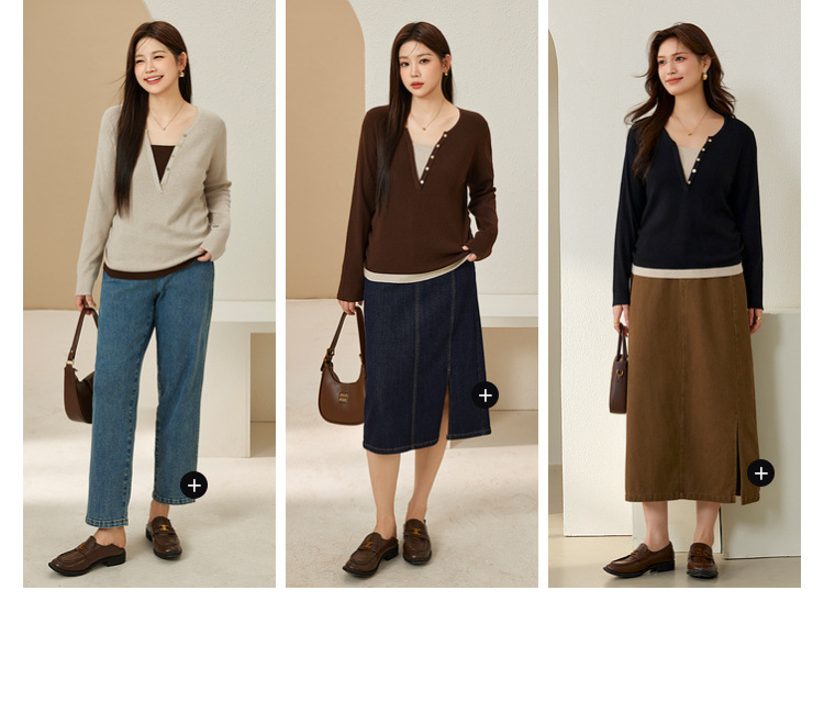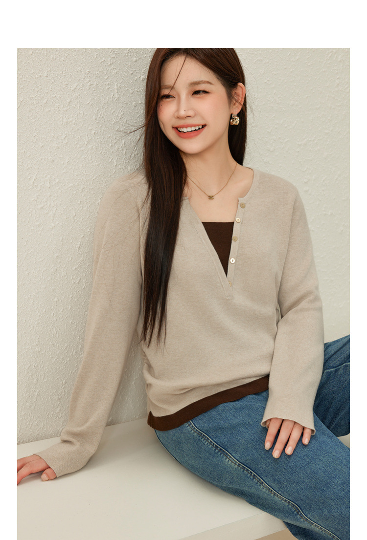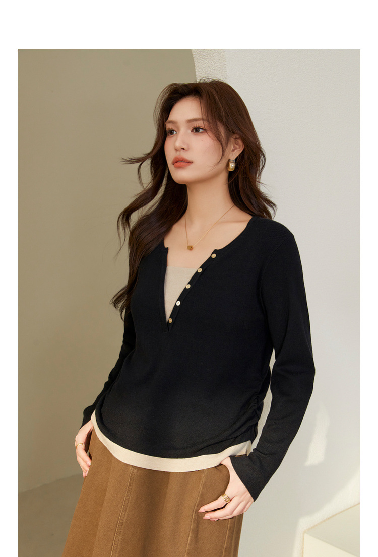 Цветное шоу большой размер женской одежды нежный темперамент, поддельные две тонкие дикие свитера жирный mm2024 осенний новый