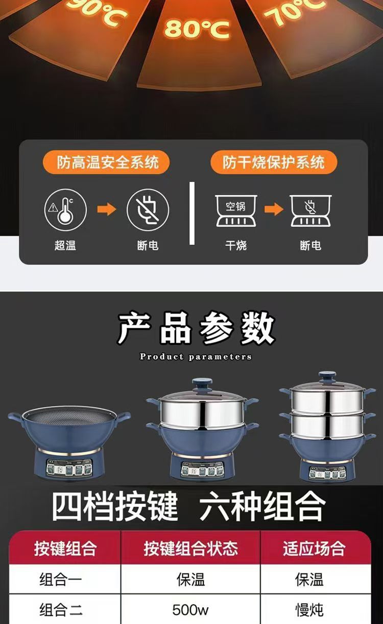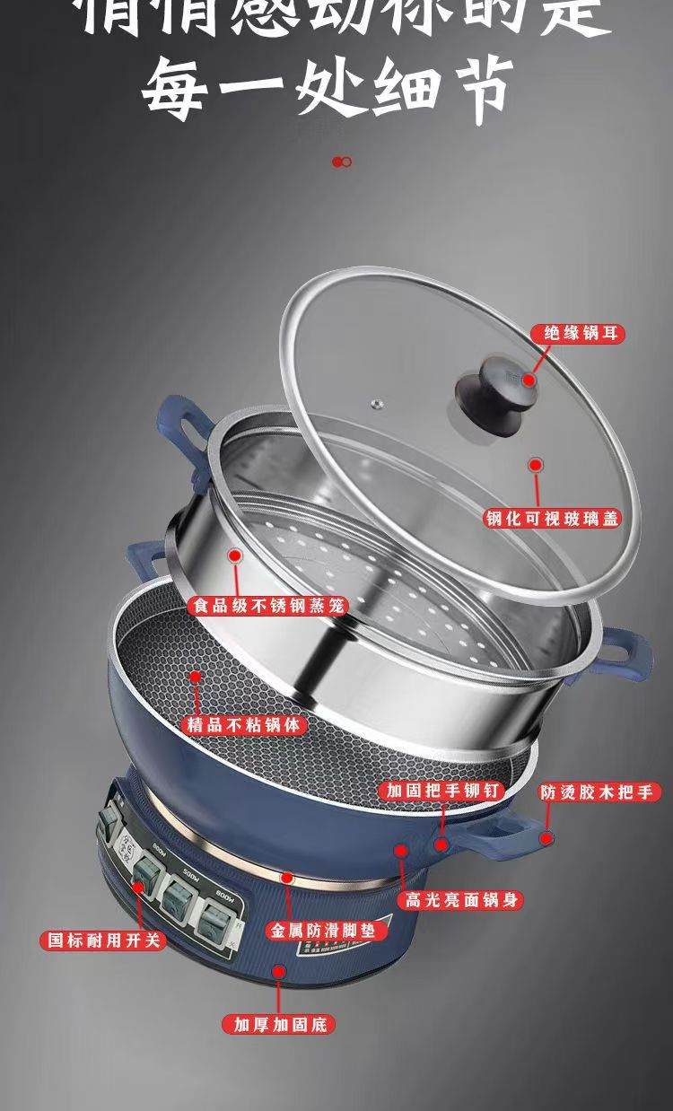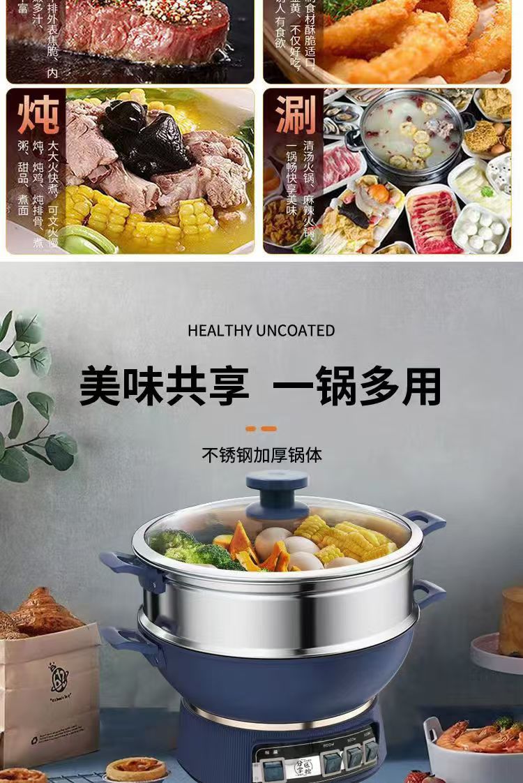 Многофункциональная электрическая кастрюля, электрическая рисоварка, электрическая пароварка, универсальная кастрюля для приготовления на пару и варки, бытовая электрическая кастрюля из нержавеющей стали, многоцелевая.