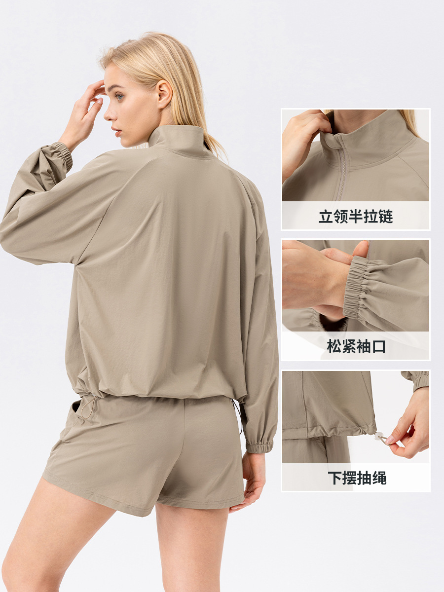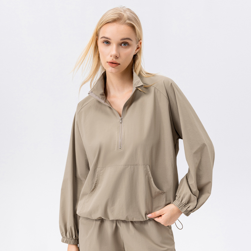 Осенне-зимняя спортивная толстовка женская с воротником-стойкой на молнии, быстросохнущая, дышащая, для бега, с длинными рукавами, свободный повседневный спортивный топ для фитнеса