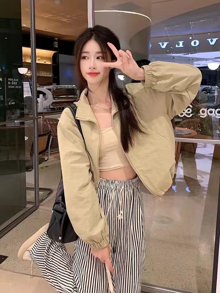 Воротник-стойка, солнцезащитная одежда, куртка с длинными рукавами, женская куртка в корейском стиле, новинка лета 202, свободная куртка, топ, повседневный топ на молнии