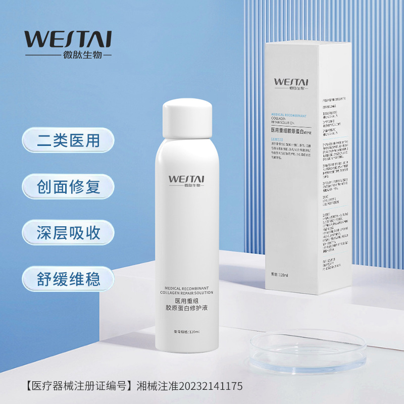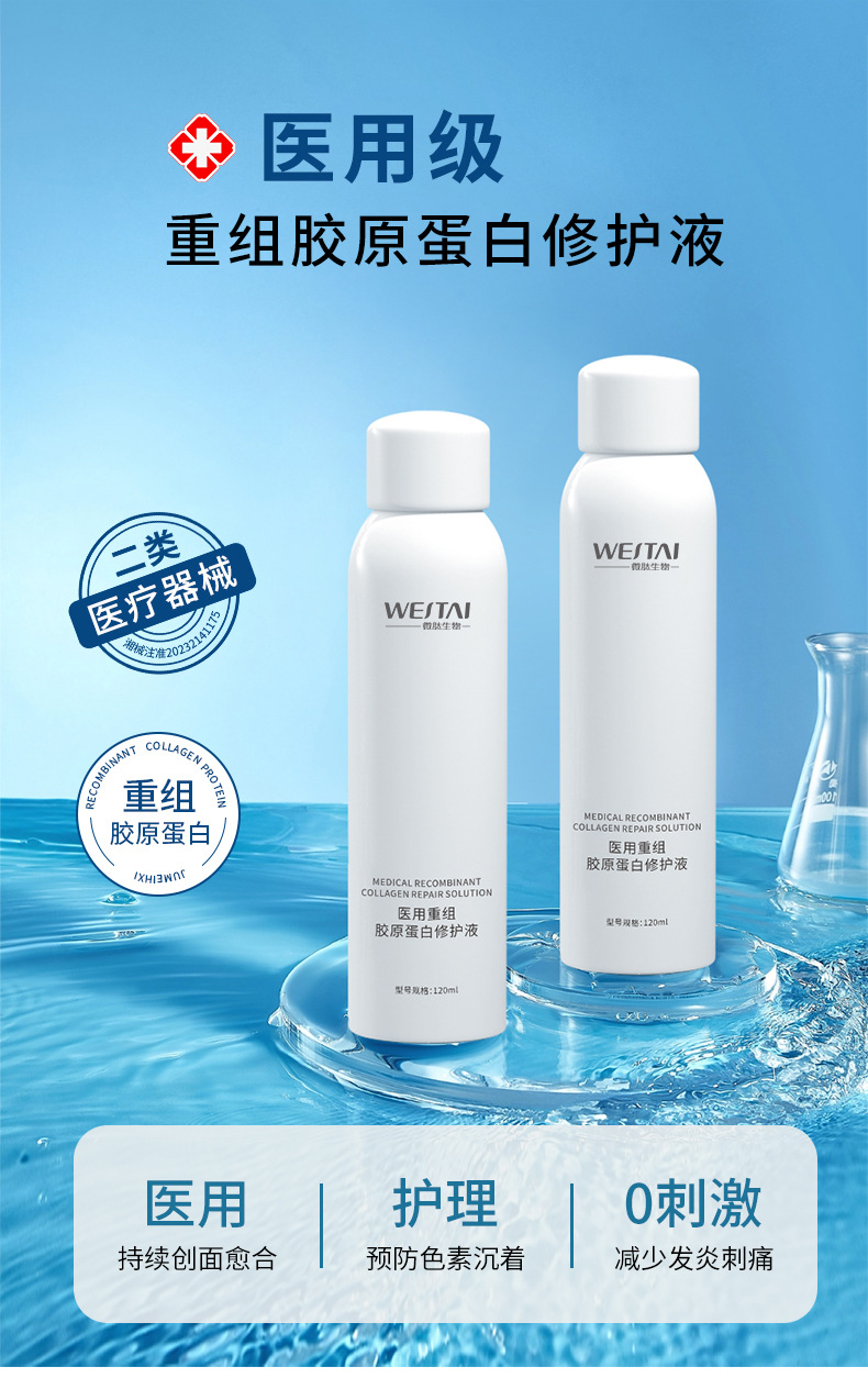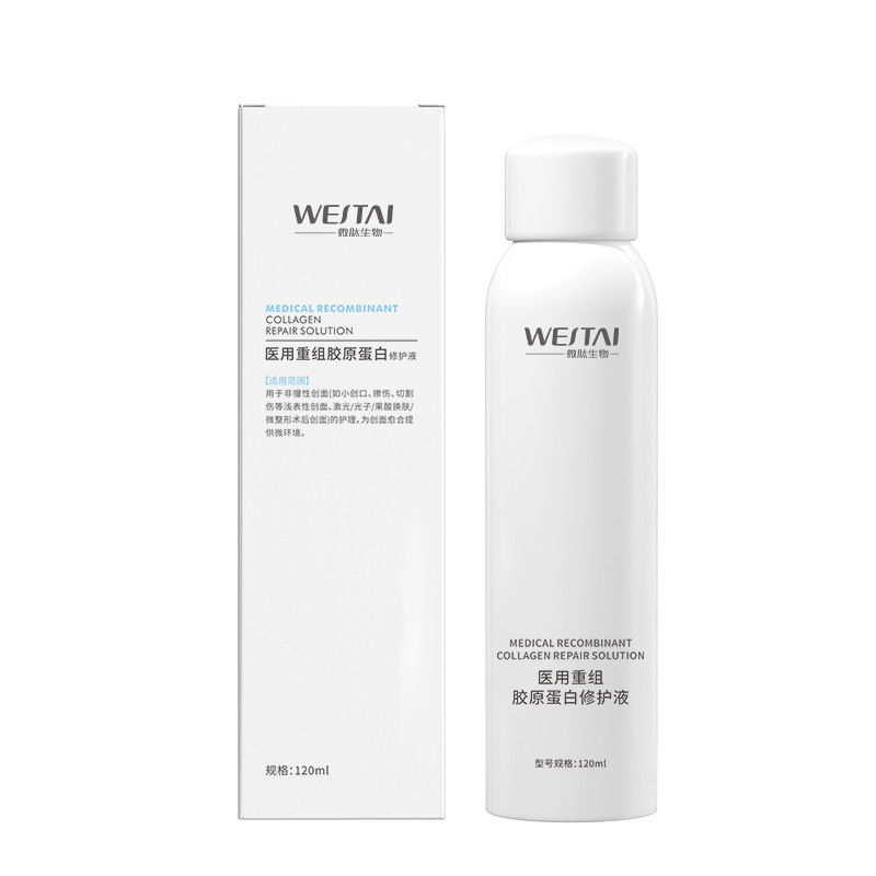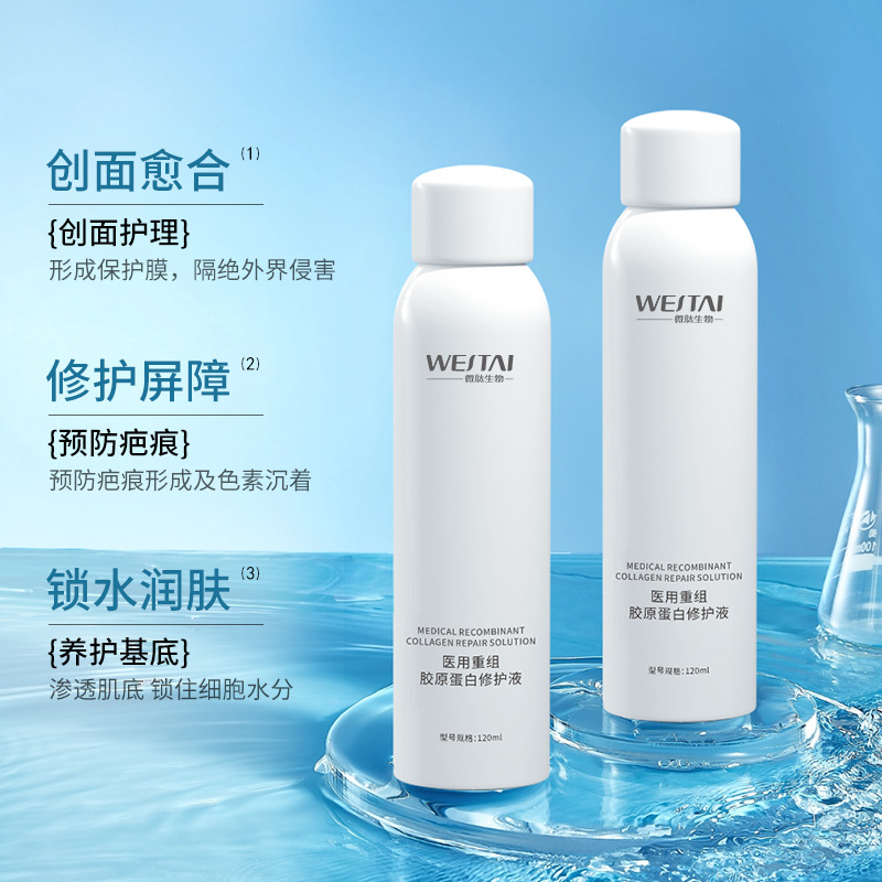 Медицинский рекомбинантный коллагеновый раствор для восстановления, раствор для ремонта медицинских устройств, средство для заживления ран, послеоперационный уход, водный спрей