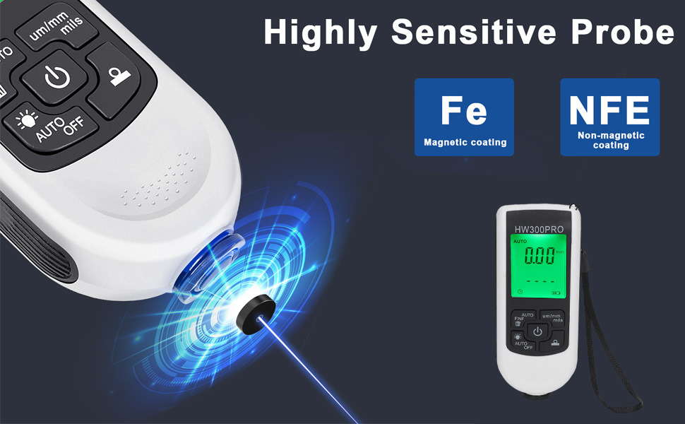 HW-300PRO высокоточный датчик толщины покрытия противоскользящая пленка краски датчик толщины пленки сухой пленки измеритель толщины