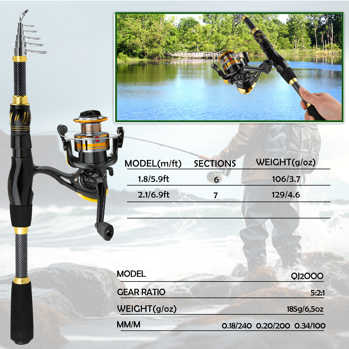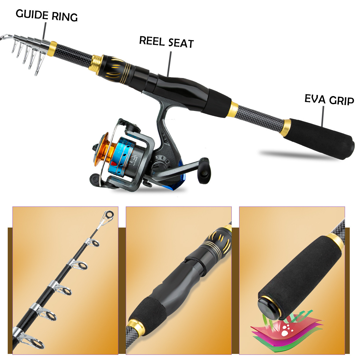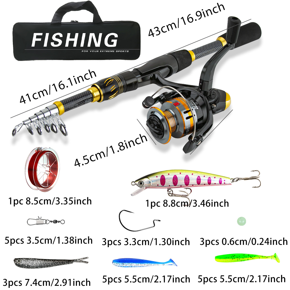 Удочка + рыболовная катушка + леска + аксессуары для коробки для приманки + сумка для рыболовных снастей