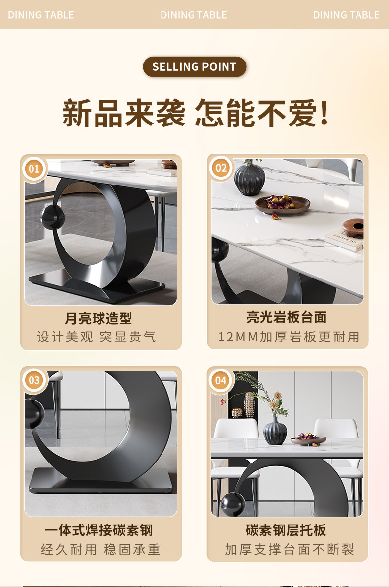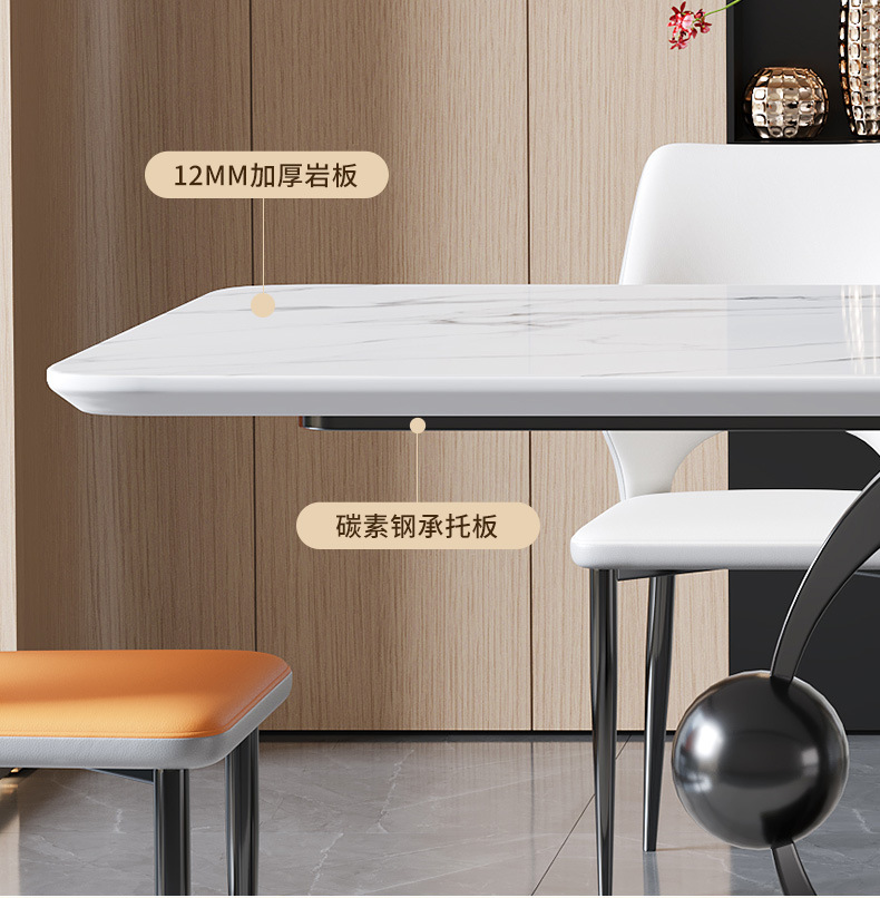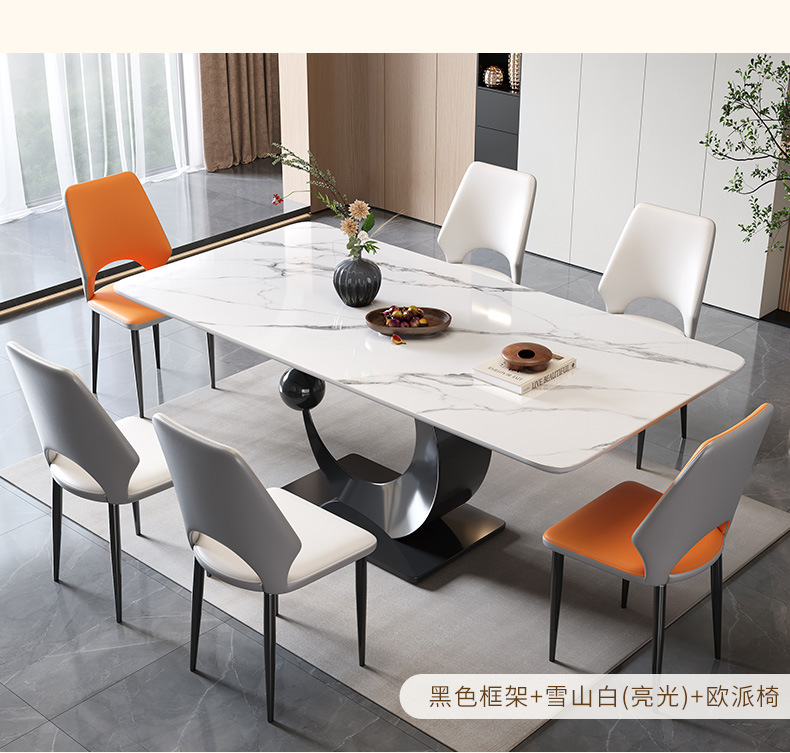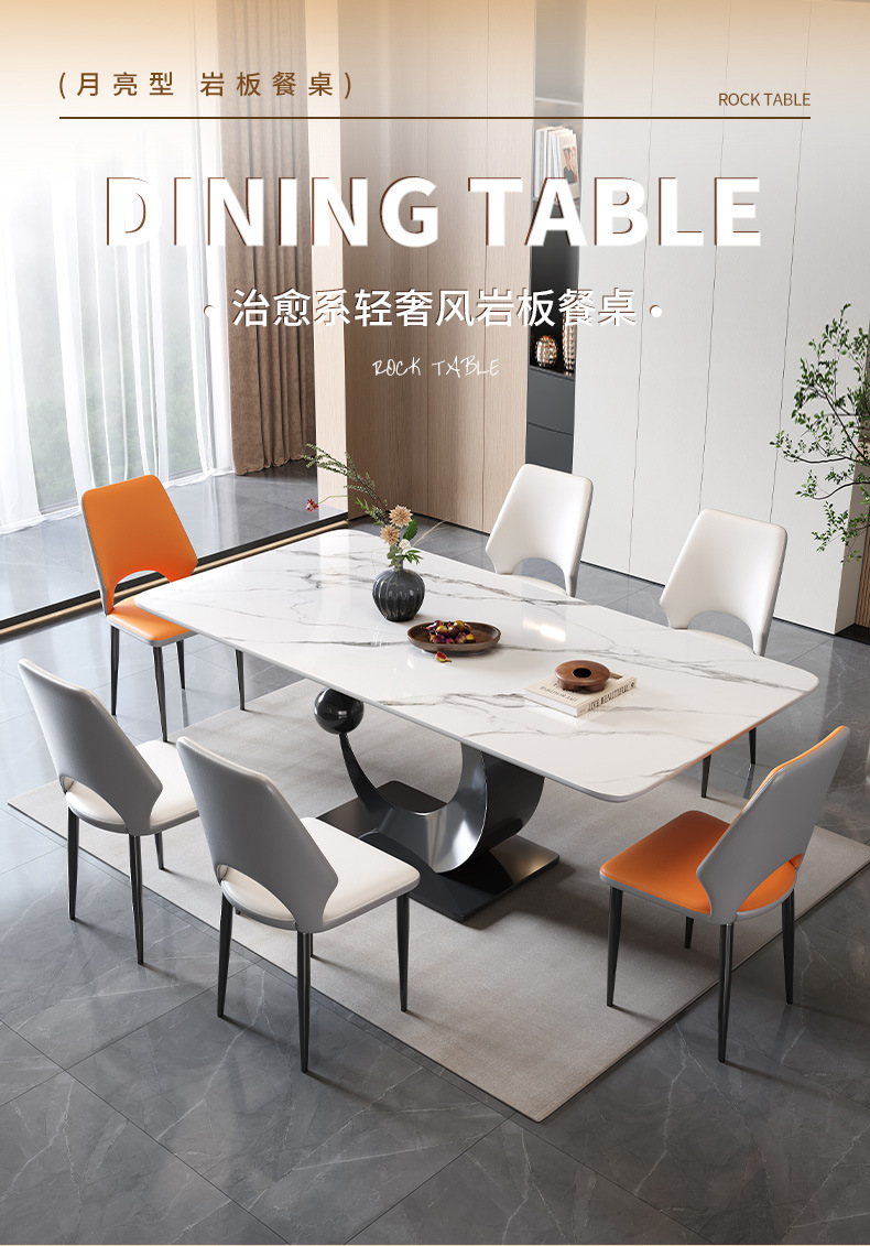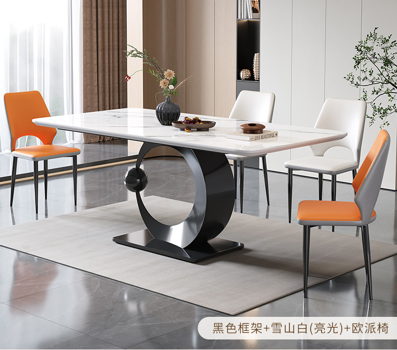 Итальянский минималистский рок-доска обеденный стол и стулья комбинация дизайнер лунный шар прямоугольный домашний высококачественный минималистский ресторан обеденный стол
