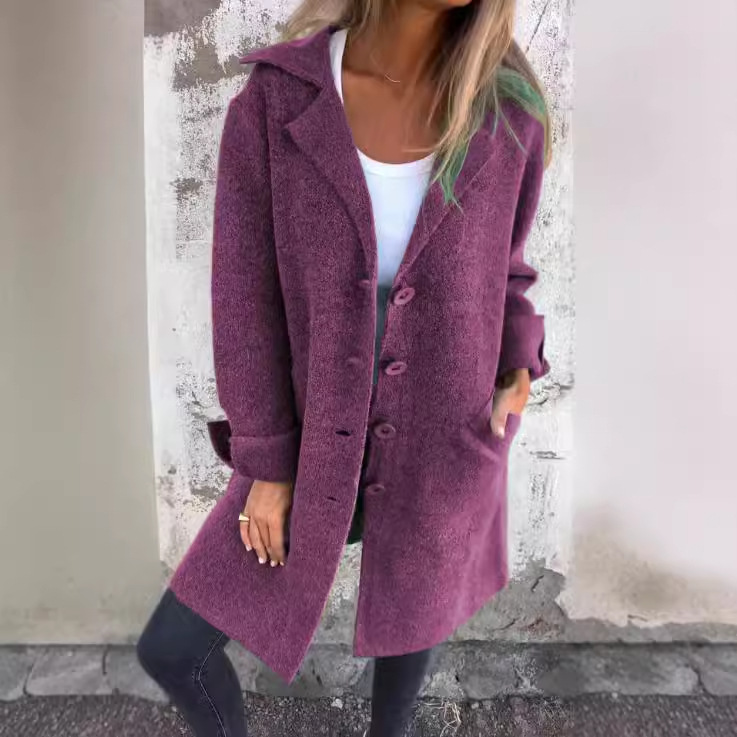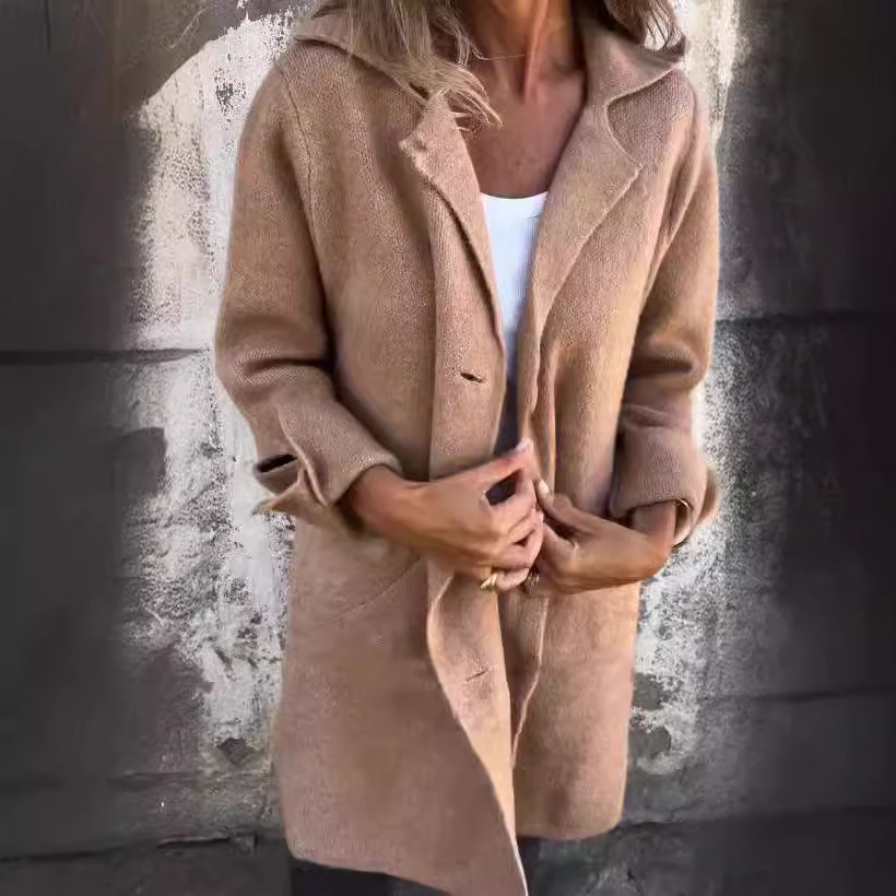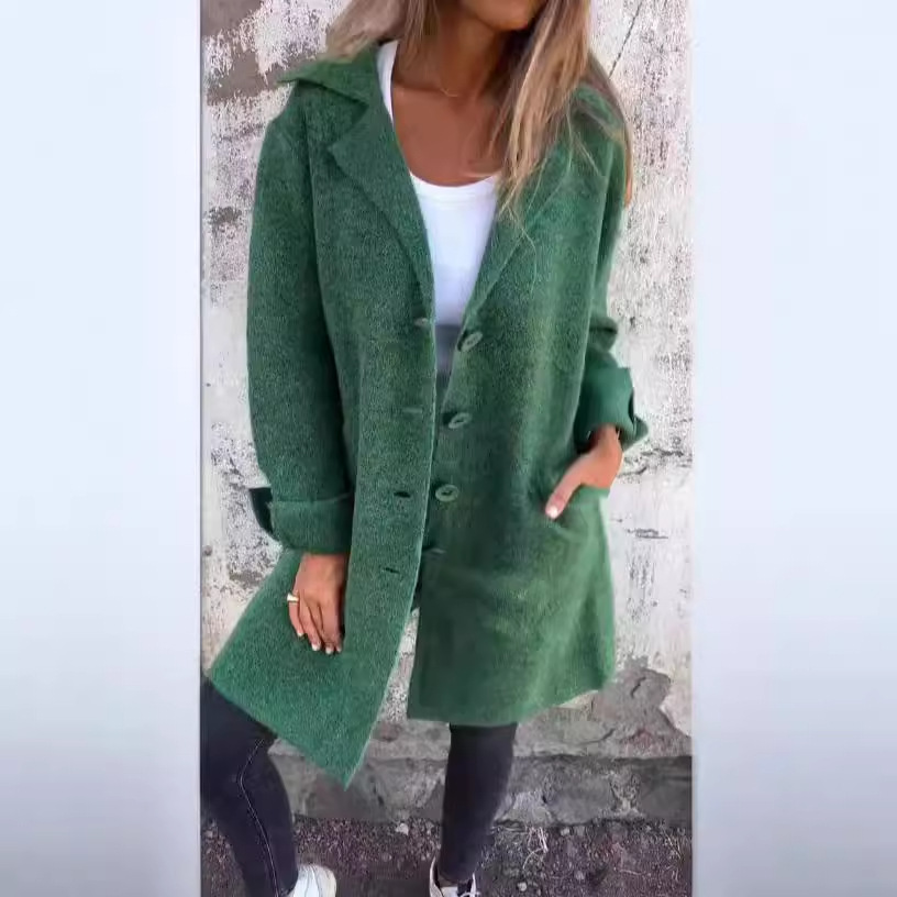 2024 осень и зима Amazon трансграничный новый женский сплошной цвет отворот с карманным кардиган