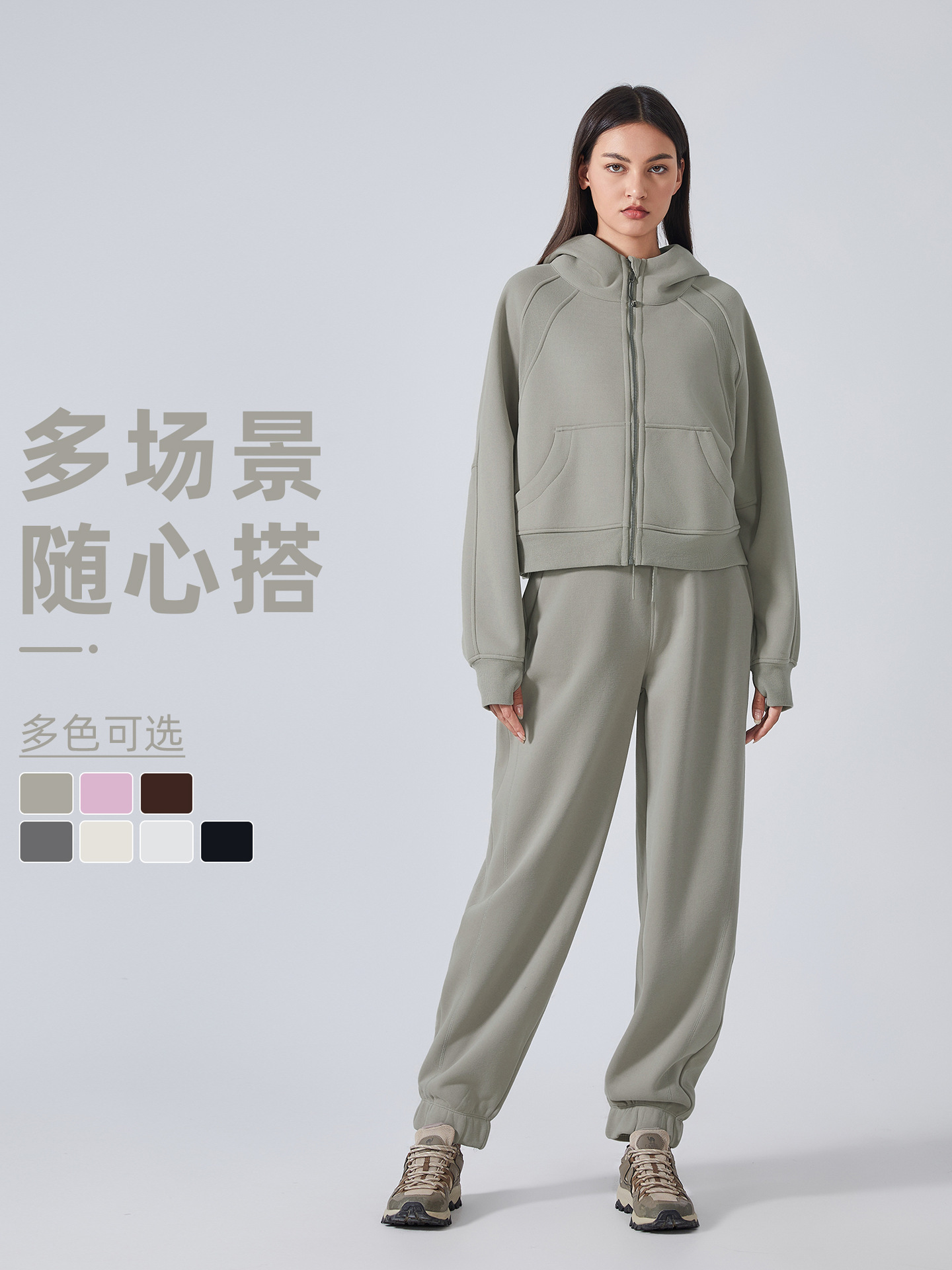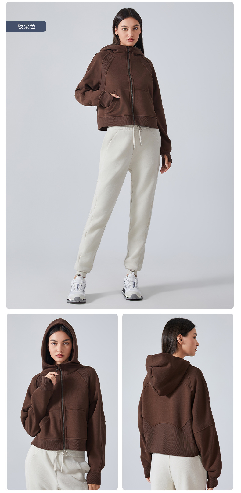 Осень и зима новый бархатный свободный фитнес-костюм для йоги спортивный досуг полный молния с капюшоном свитер куртка женский DAW151