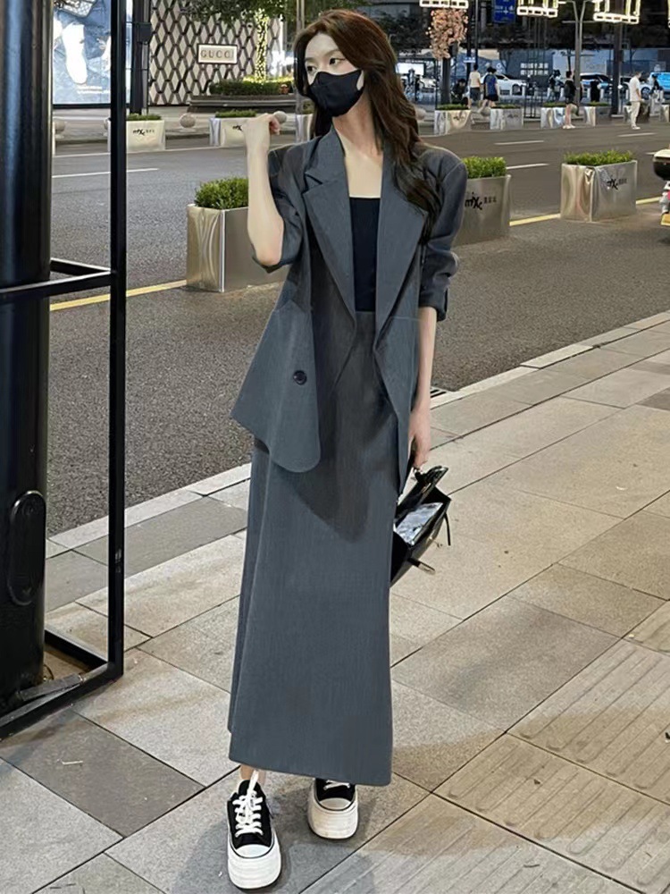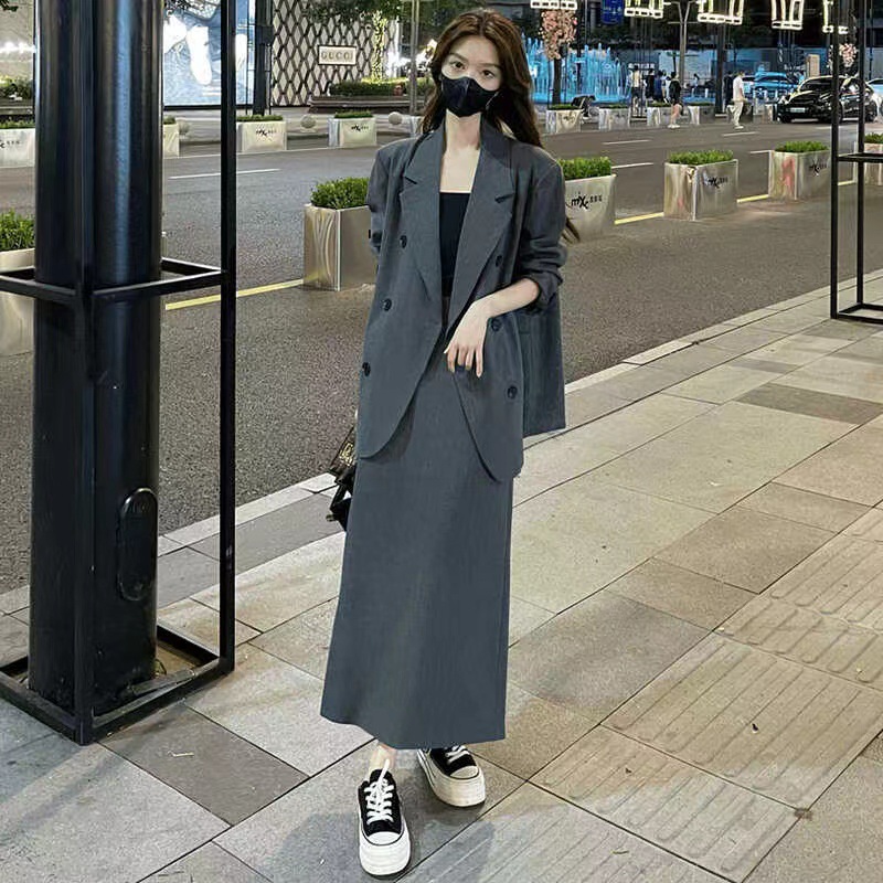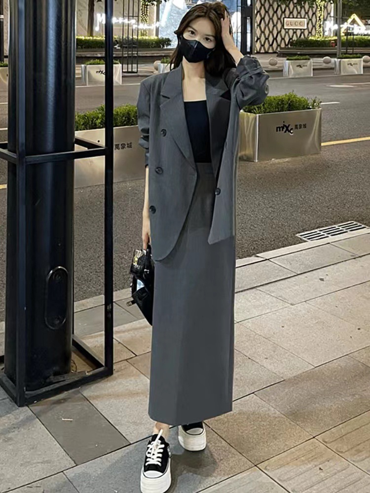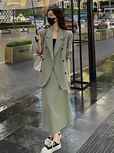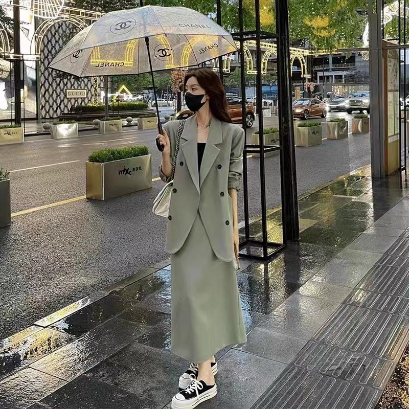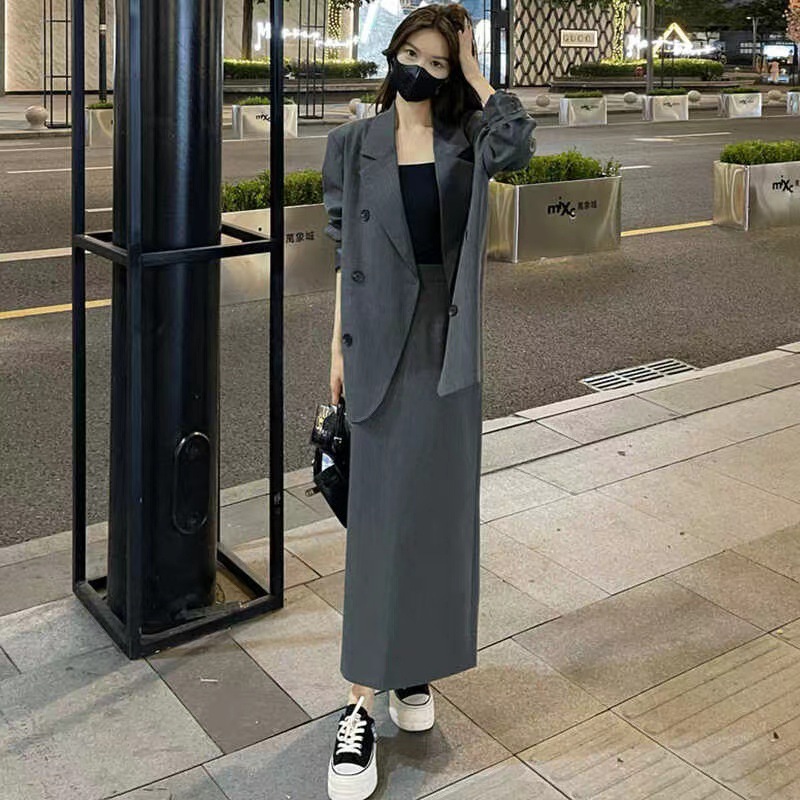 Модный костюм-юбка для женщин, новая осенняя коллекция, профессиональный и элегантный, облегающий комплект из двух предметов [6638]