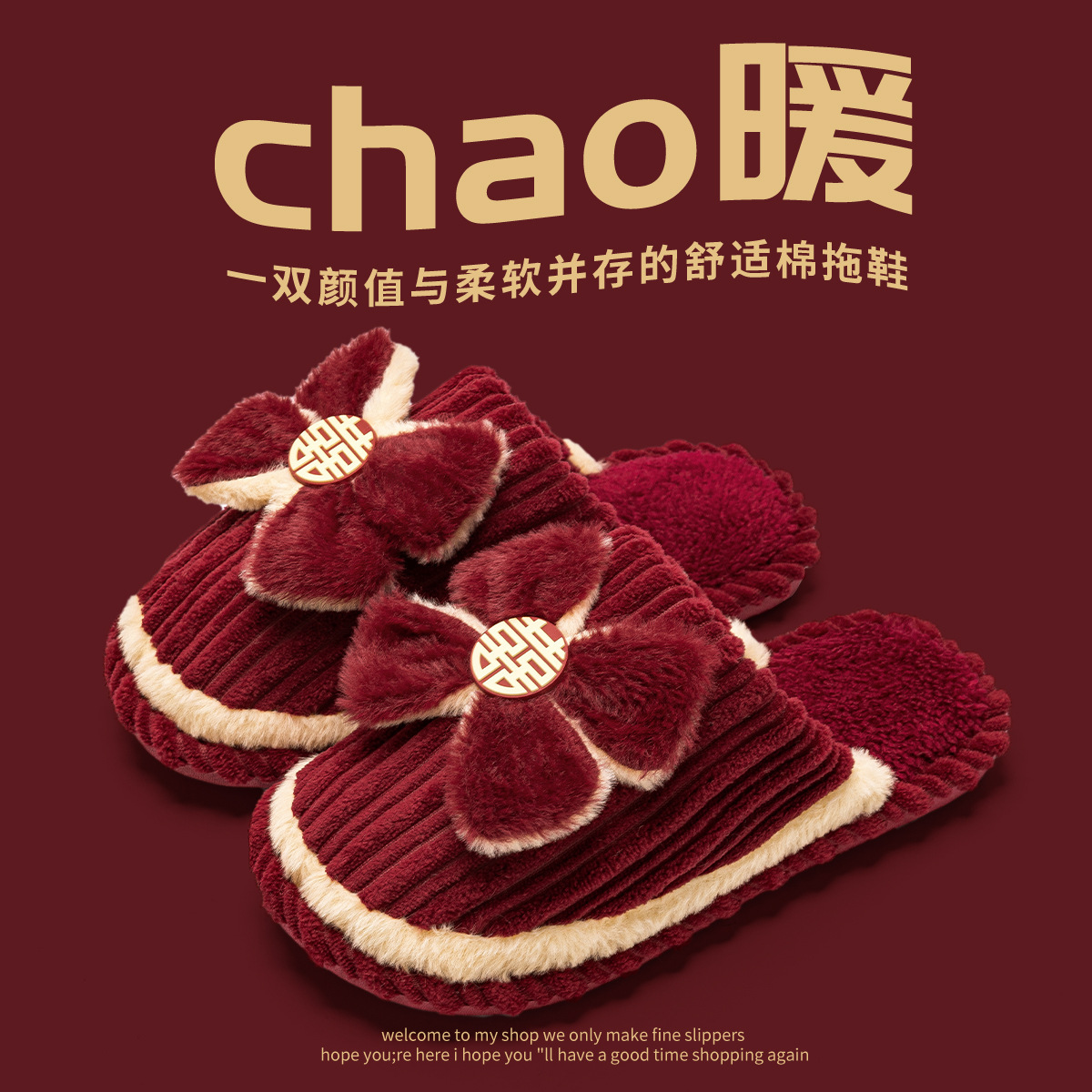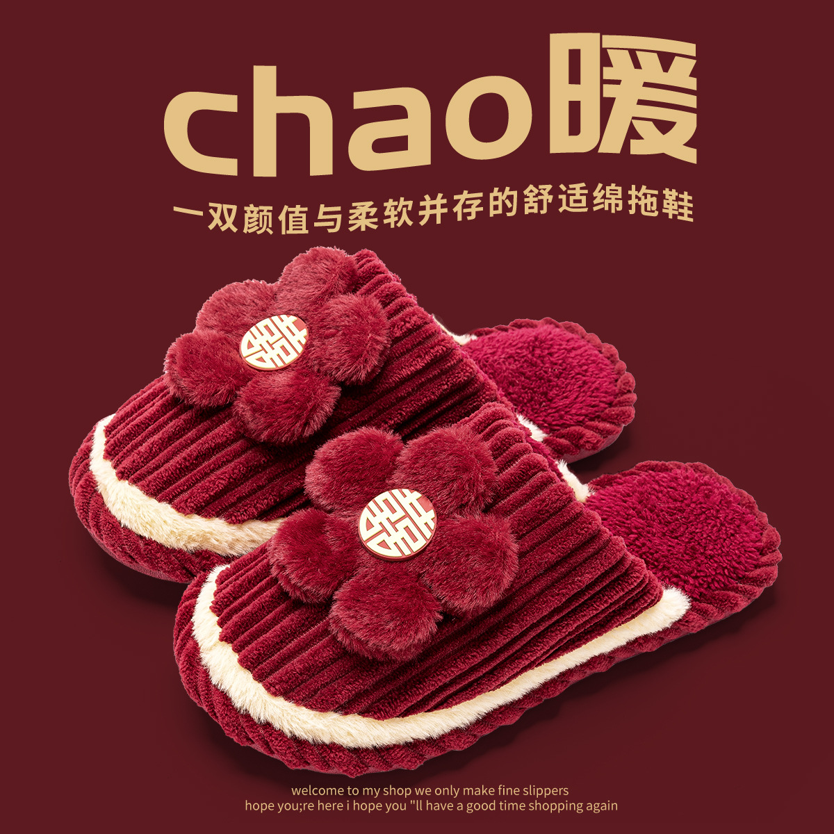Хлопковые тапочки для свадьбы пара женщин осень зима 2025 новый праздничный приданый новобрачные пижамы пара красные свадебные туфли QL