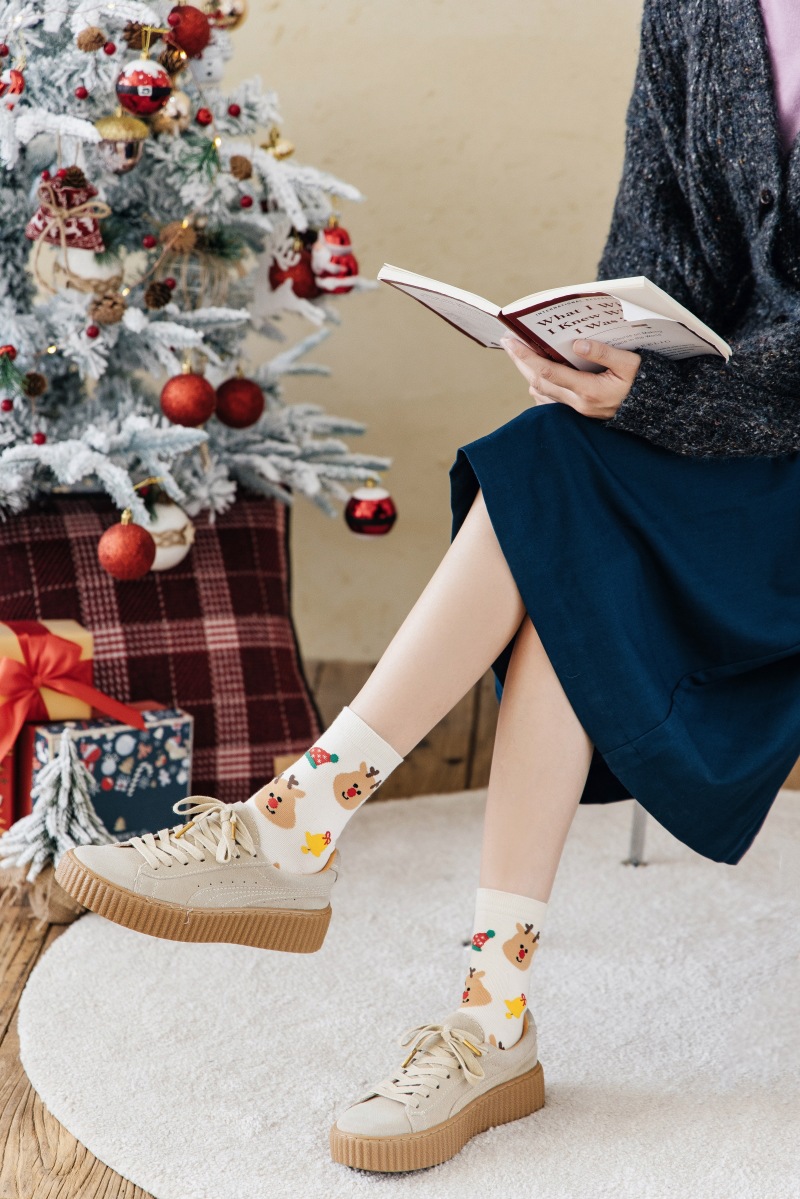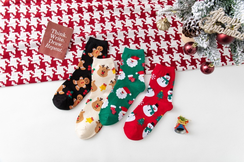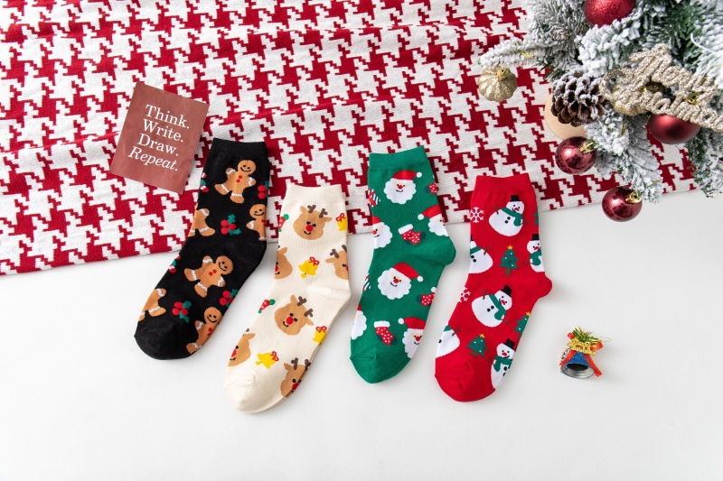 2024 новые рождественские носки дети осень-зима мультфильм милые средние носки большие красные носки Санта-Клаус японский хлопок