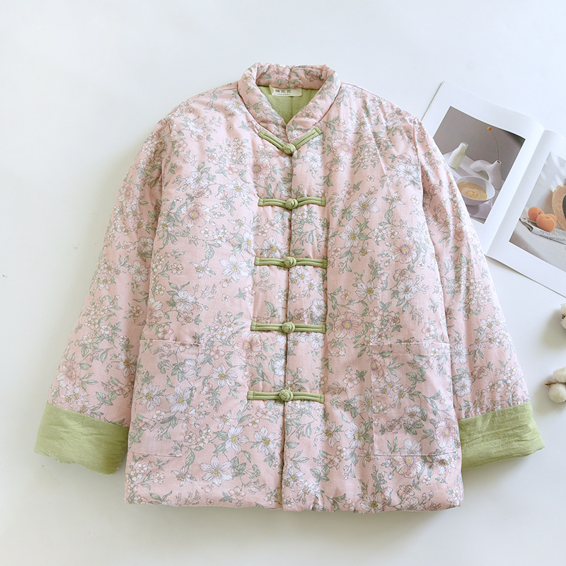 61 осенняя и зимняя леди теплая хлопчатобумажная одежда ретро теплая куртка среднего и пожилого возраста свободная хлопковая куртка ручной работы