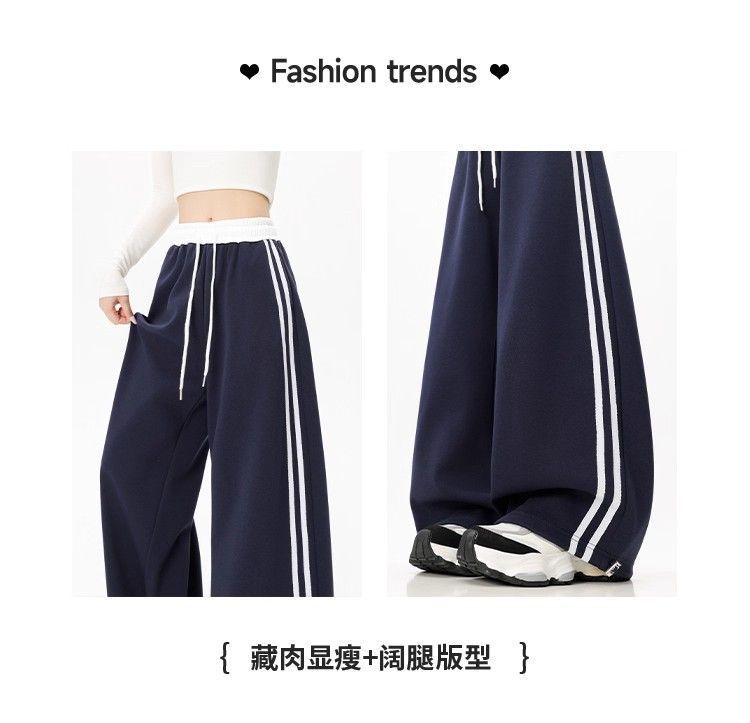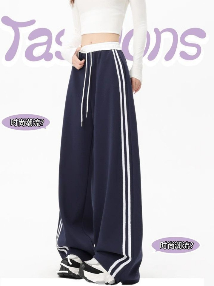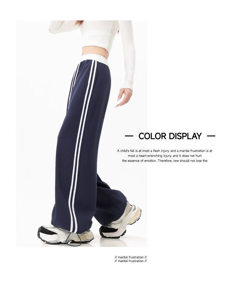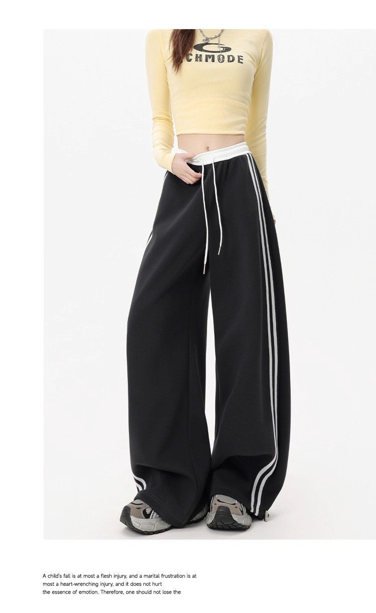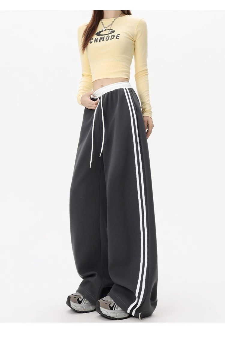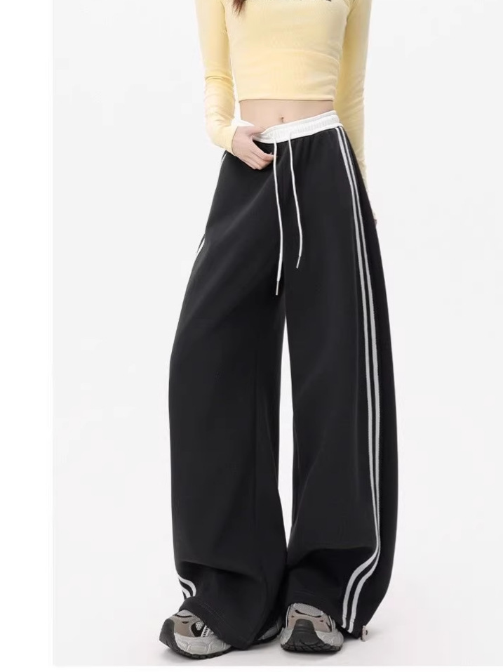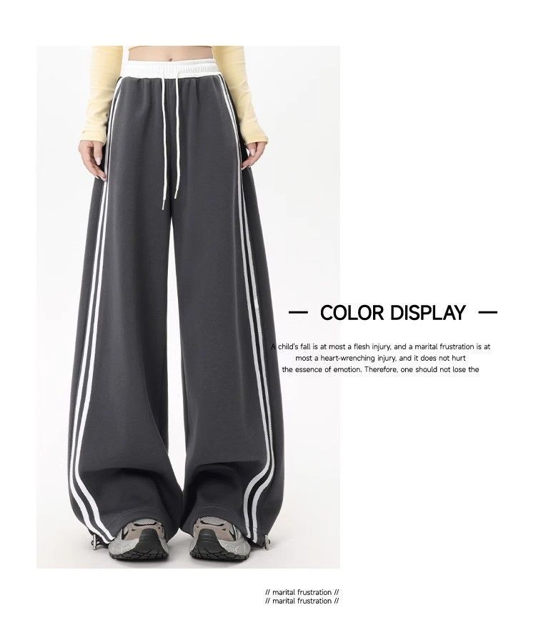 Женские весенне-осенние повседневные спортивные штаны с высокой талией и цветными блоками, свободные драпированные прямые брюки с широкими штанинами в полоску в стиле пэчворк.