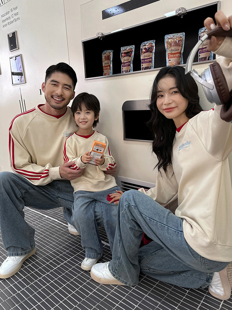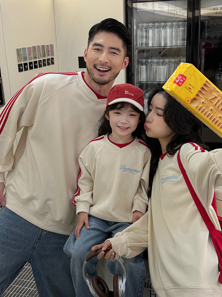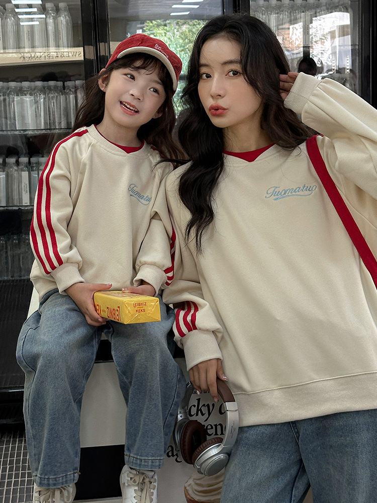 Семья из трех или четырех родителей и детей в свитер весной 2025 новый жареный уличный женский костюм матери и ребенка