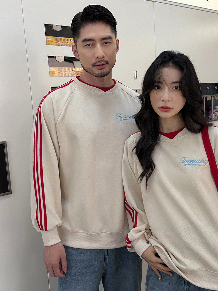 Толстовка с красным галстуком; Классические брюки из белого денима.; Толстовка с красным галстуком [плюс флис]