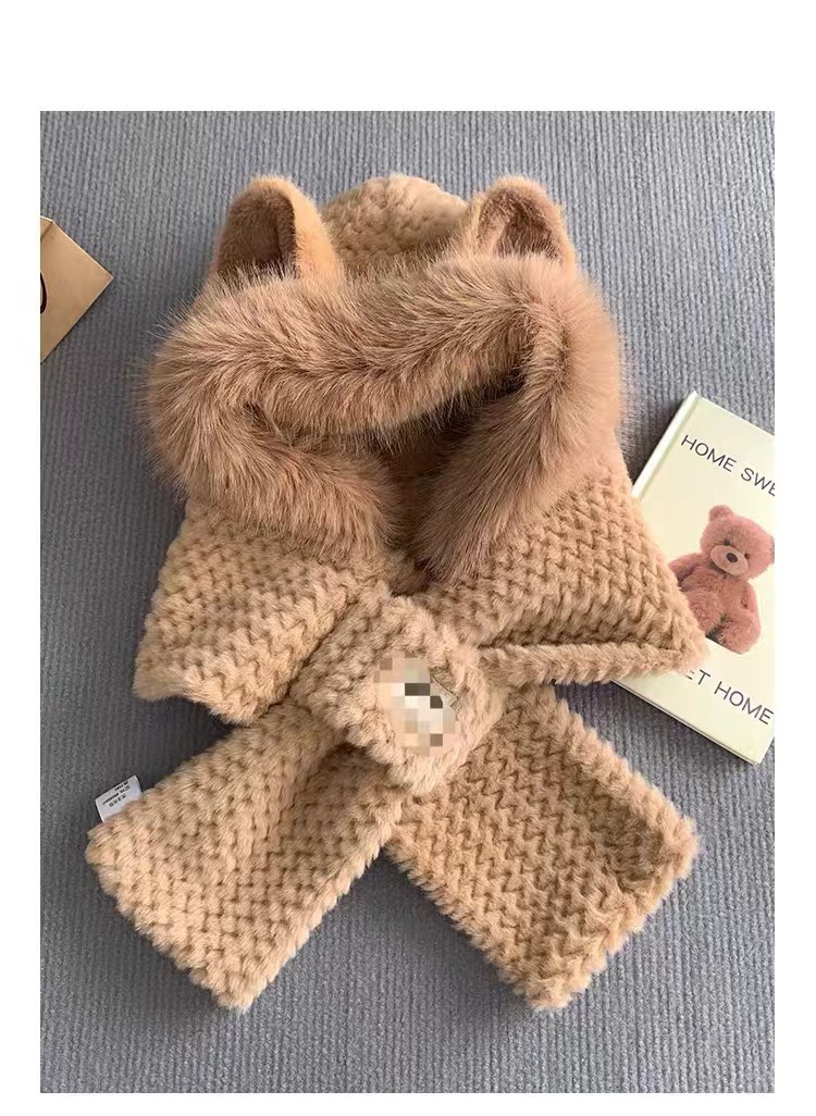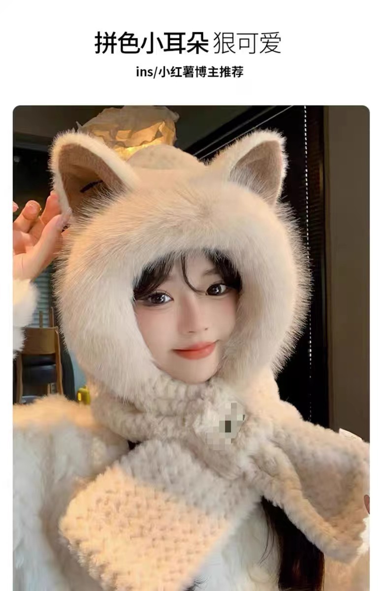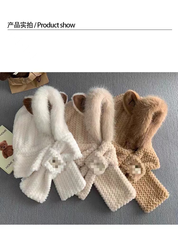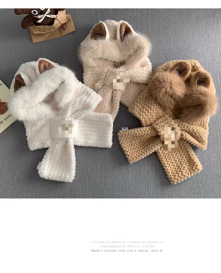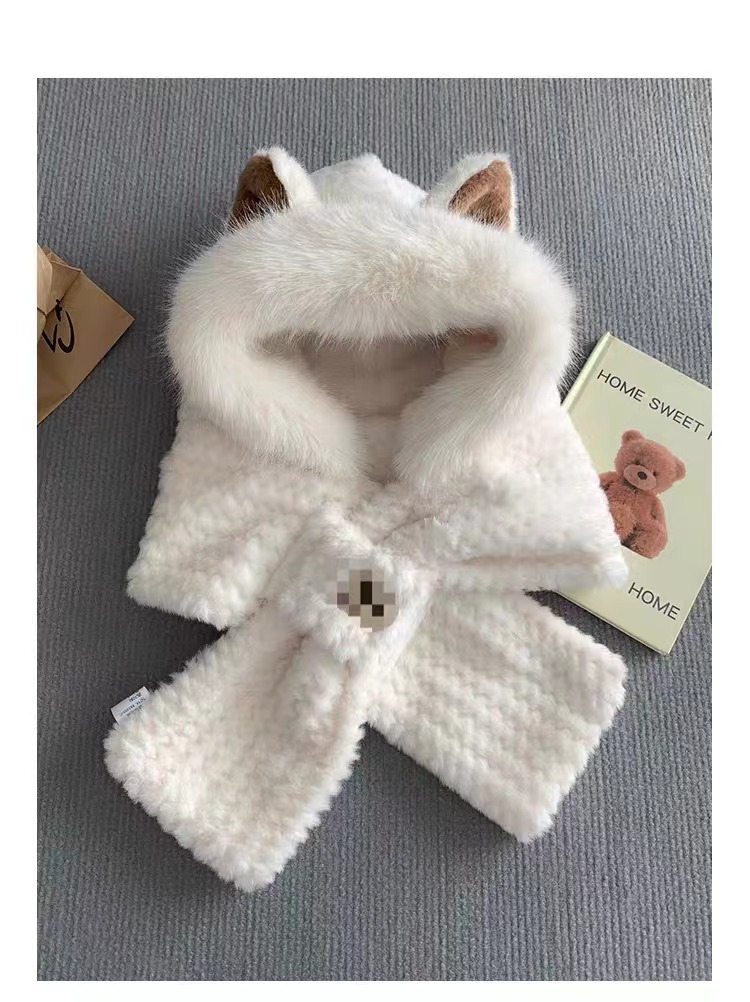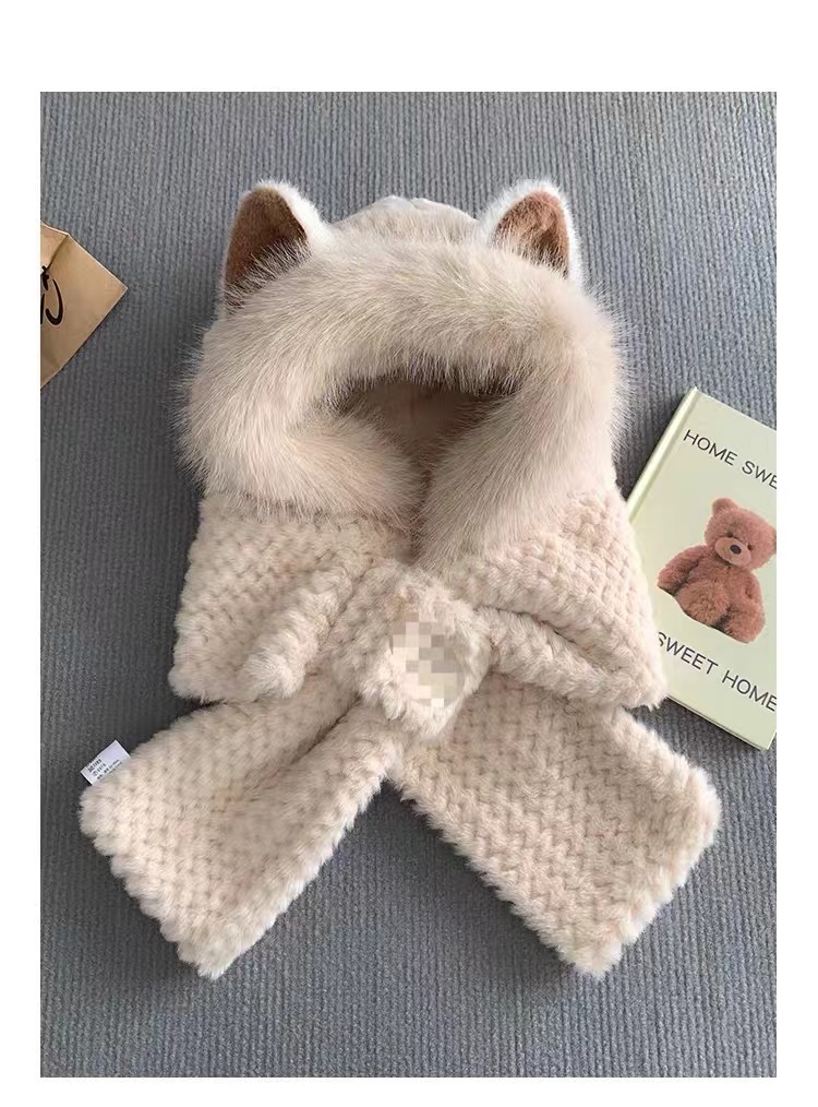 Плюшевая шапка для детей осень-зима шарф один теплый плюс бархатный велосипедный нагрудник милый защита от холода 2024 новый