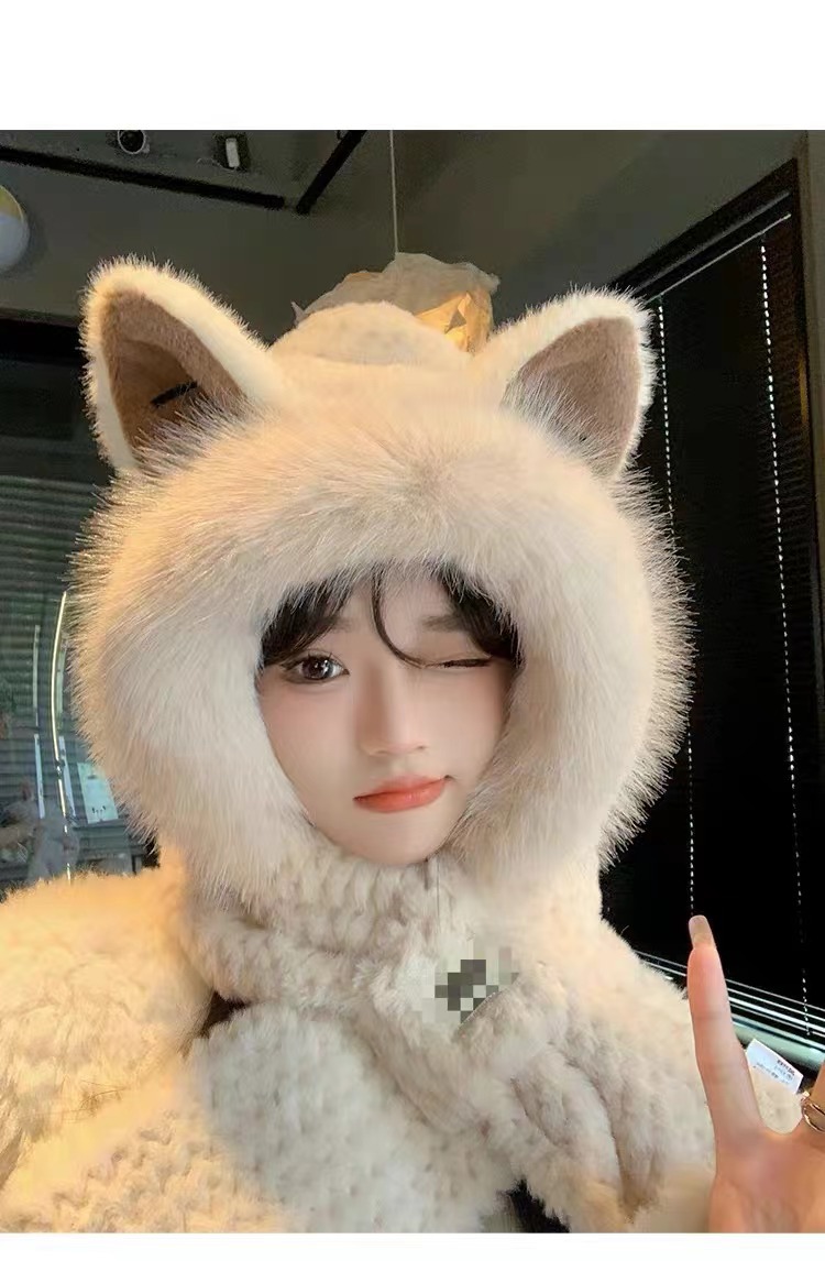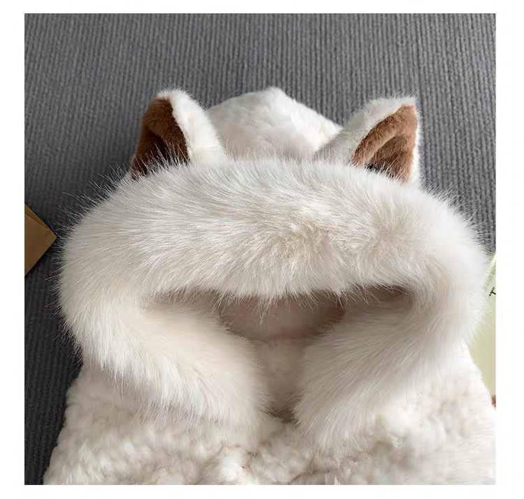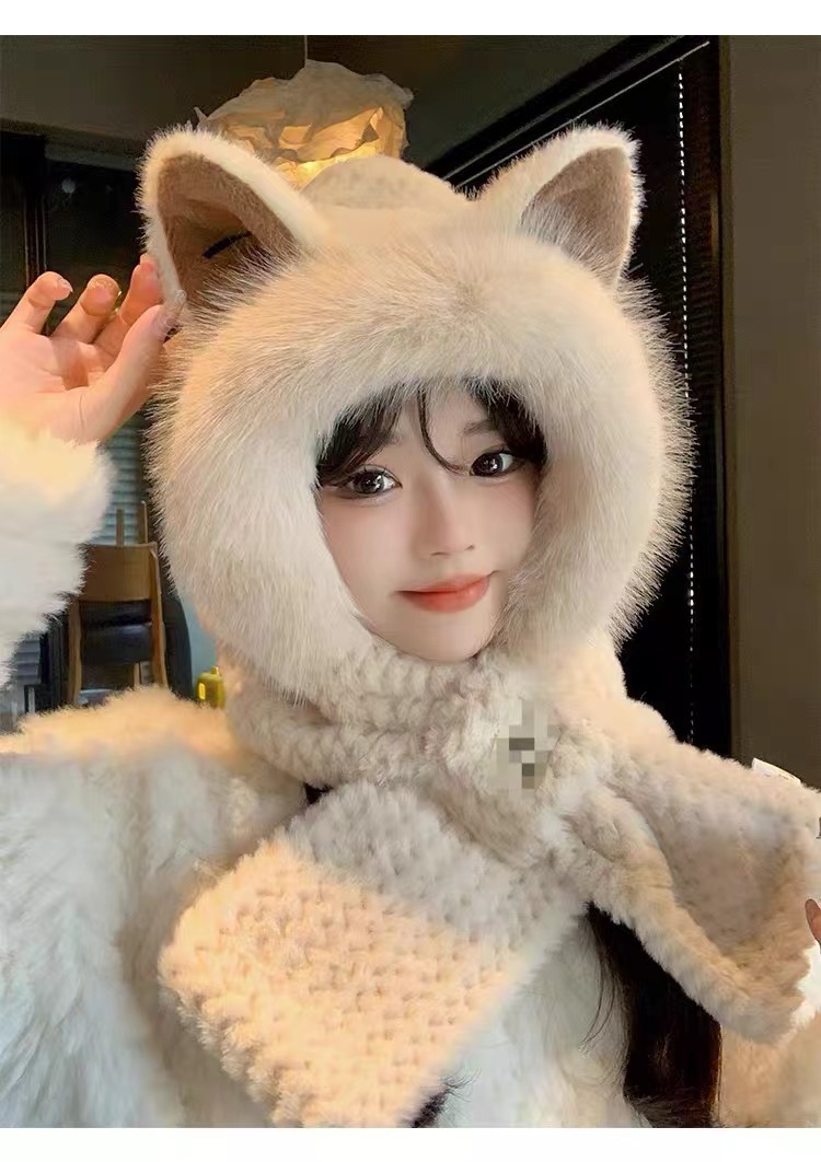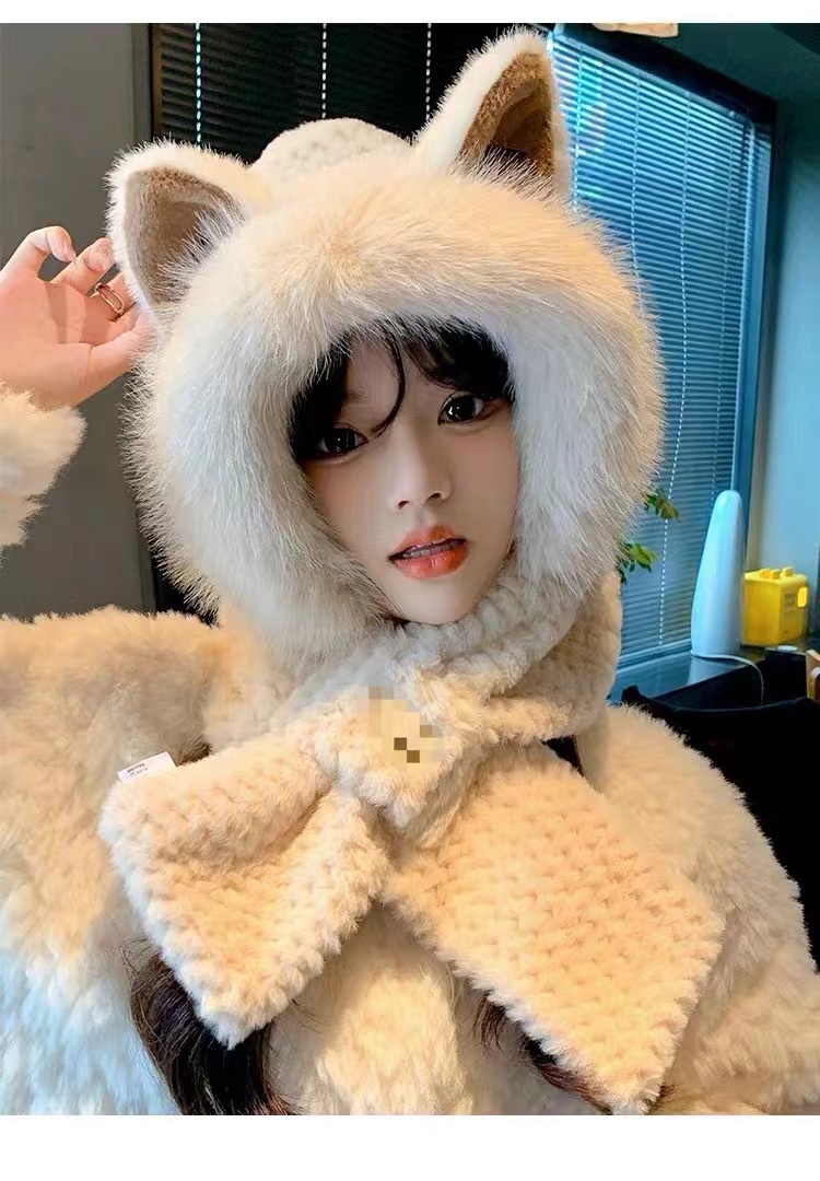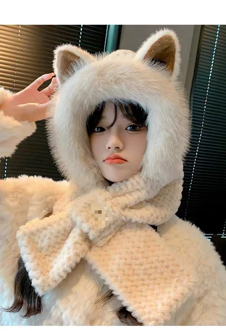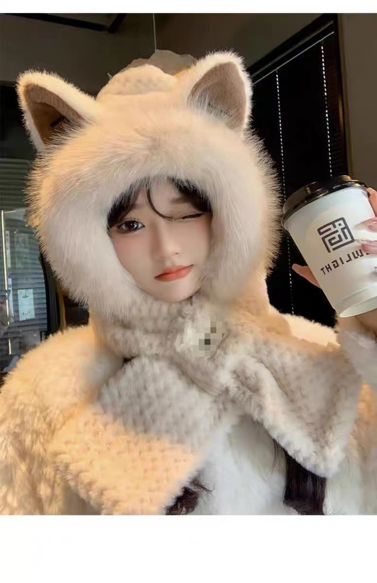 Плюшевая шапка для детей осень-зима шарф один теплый плюс бархатный велосипедный нагрудник милый защита от холода 2024 новый