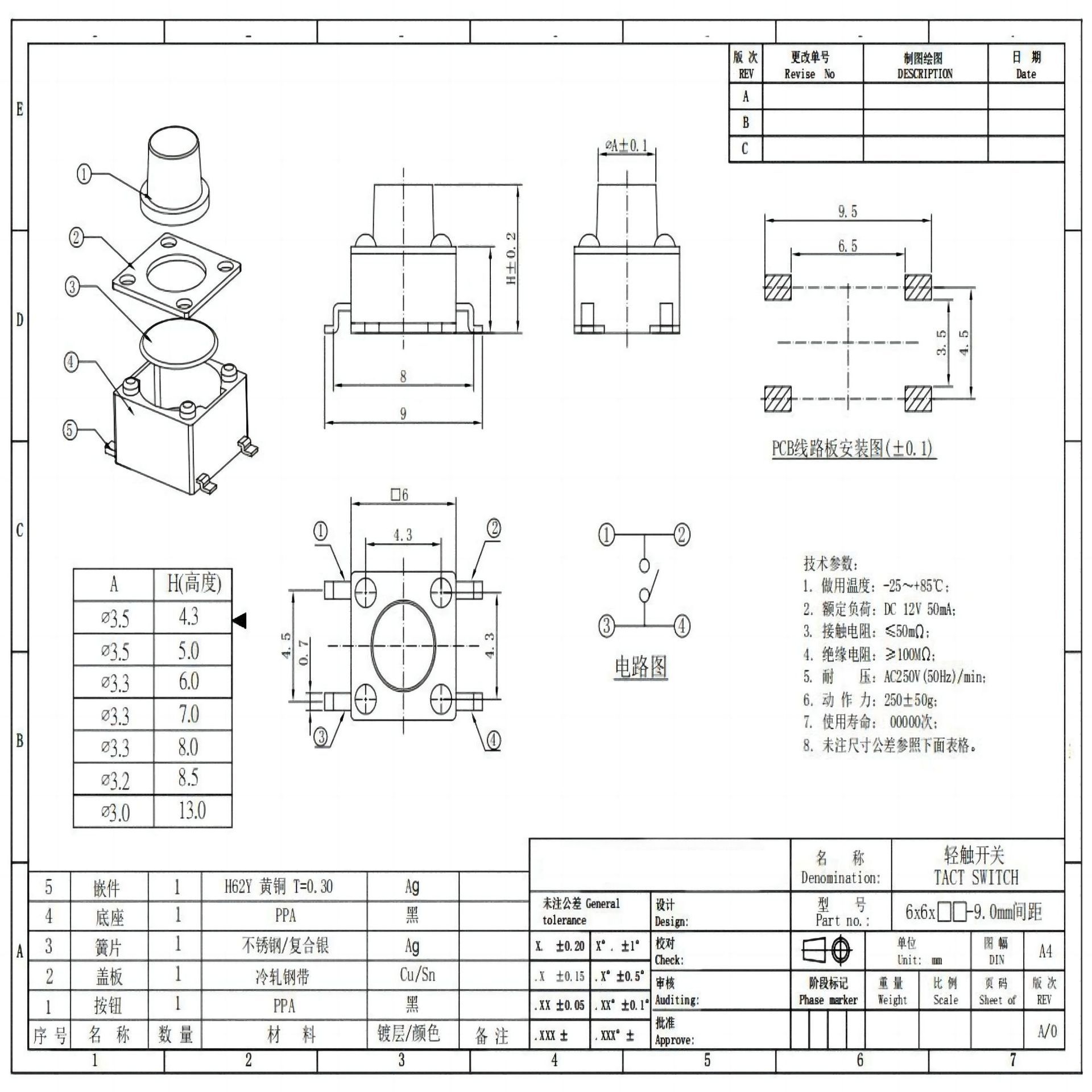 Jiahao коснулся 6*6*4 ~ 14H патч для защиты окружающей среды и высокой температуры жизни 6*6 кнопочный переключатель