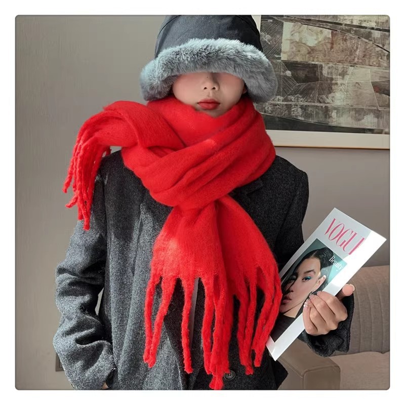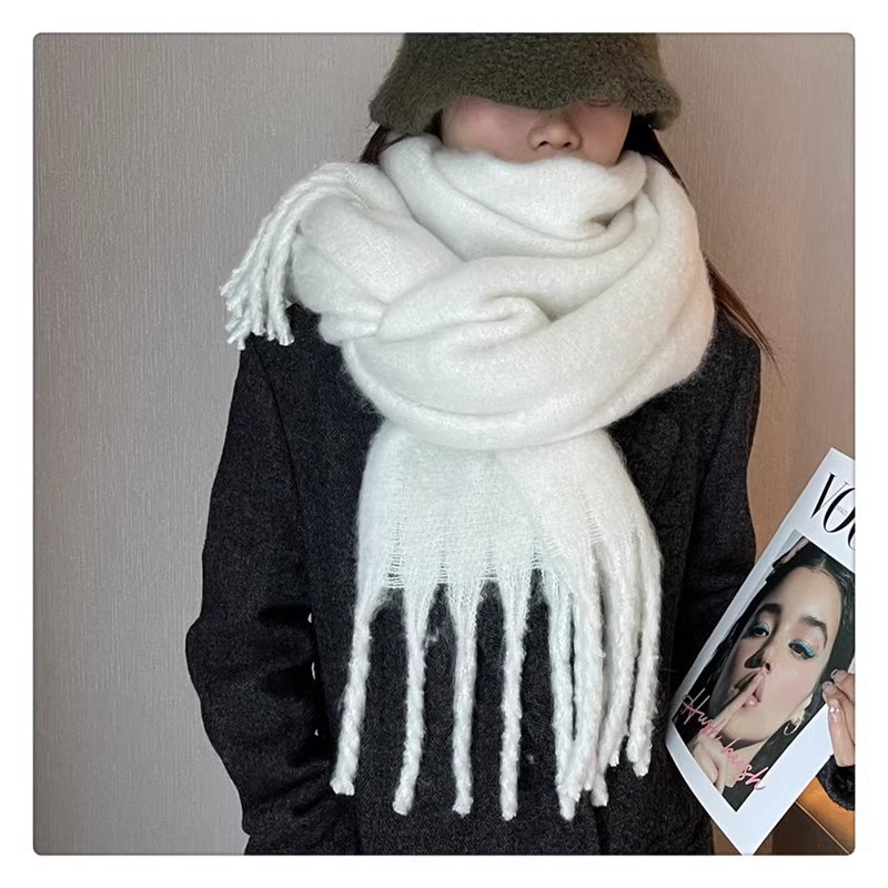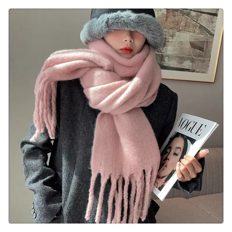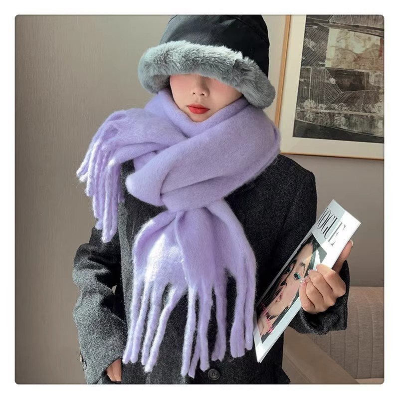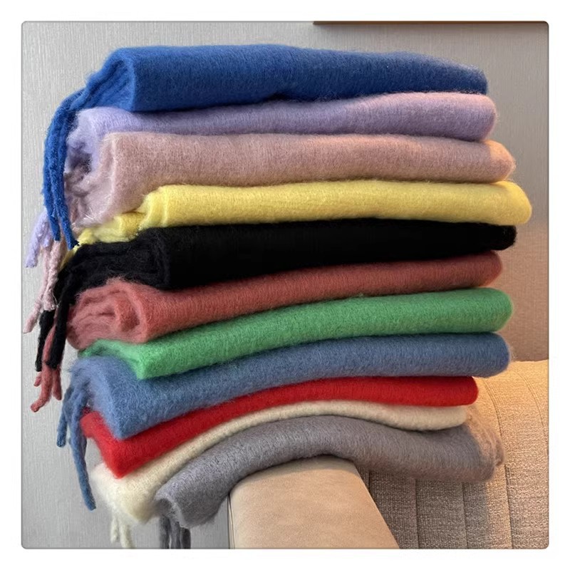 Зимний мохеровый однотонный шарф для женщин, оптом от производителей, европейский, американский, японский и корейский трансграничный платок, элитный, теплый шарф для шеи, модный.