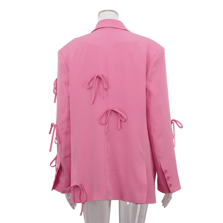 Женский костюм-пиджак весна-осень 2025, новый, малый размер, элитный дизайн, нишевый бантик, розовый, свободный крой, повседневный стиль