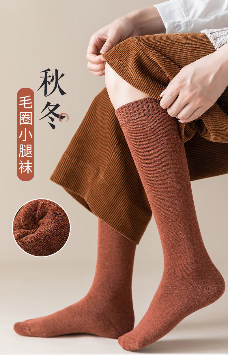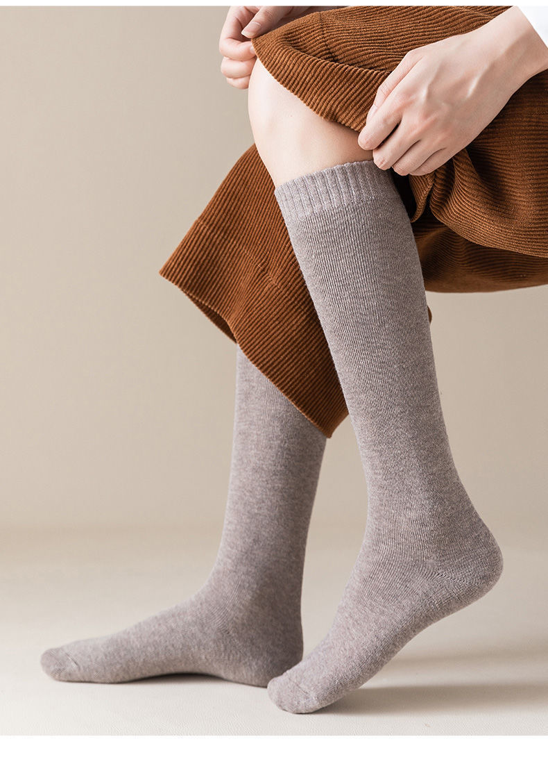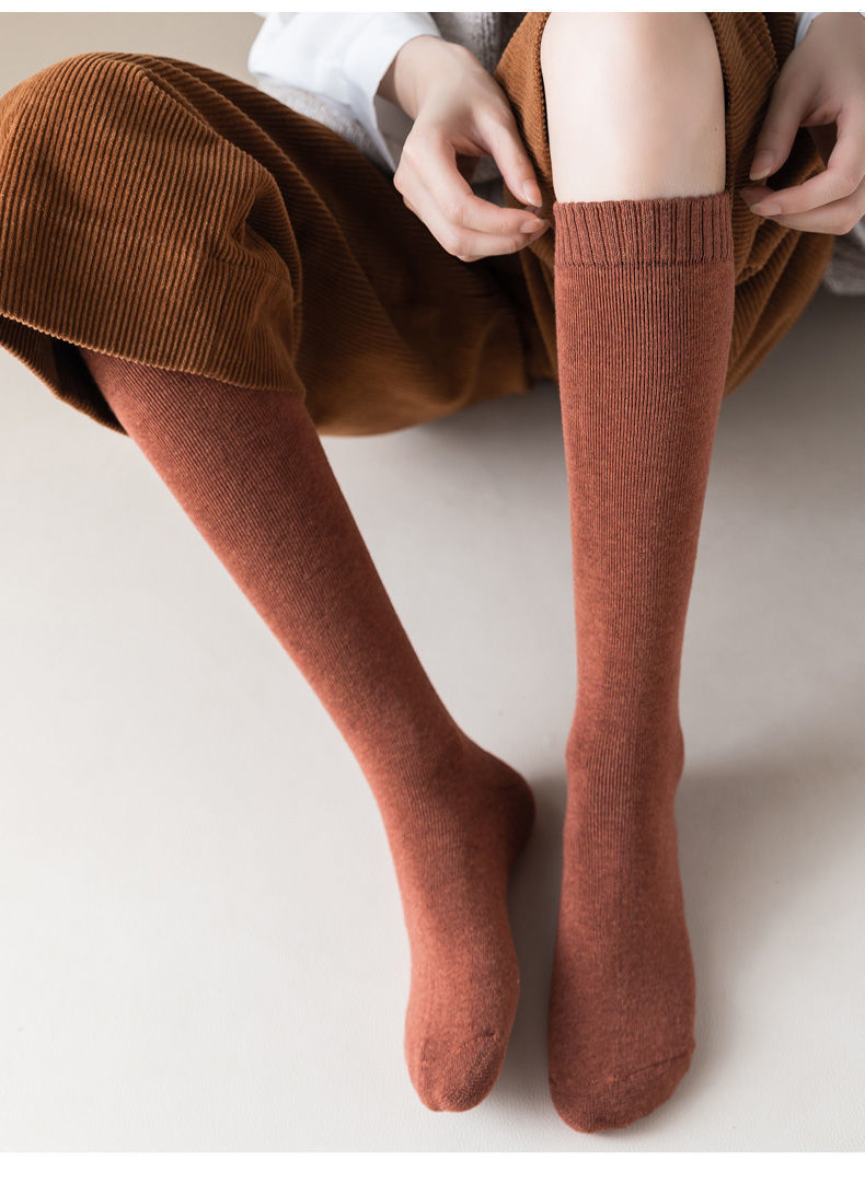 Носки женские носки для ног согревайте и утолщите высокие носки для волос осенью и зимой сплошной цвет тонкая корейская версия jk женские чулки