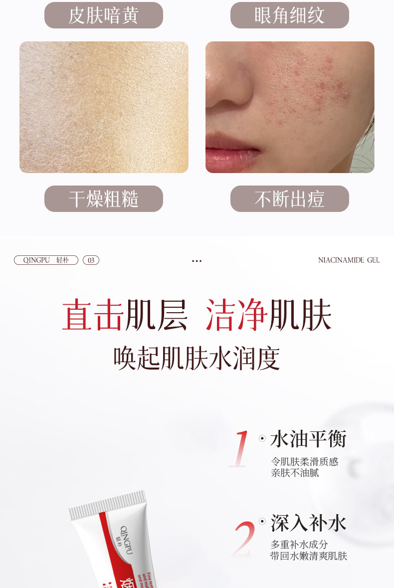 Гель с ниацинамидом Qingpu Арбутин осветляет кожу, увлажняет, увлажняет, устраняет следы акне, темные пятна и темно-желтый крем-лосьон
