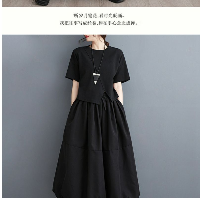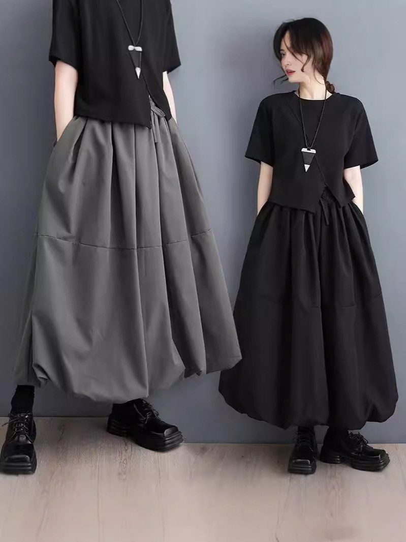Большие размеры, весна и осень, женская свободная юбка-пачка больших размеров, закрывающая живот, для похудения, новинка 2024, полудлинная юбка-пачка с высокой талией, трапециевидной формы