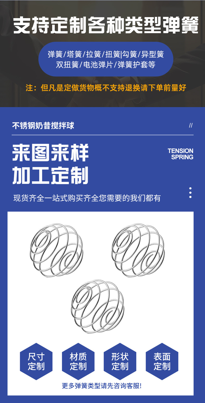 Пружинный шарик из пищевой нержавеющей стали 304, прочный шейкер для молочного коктейля, специальный пружинный шарик для смешивания пружины