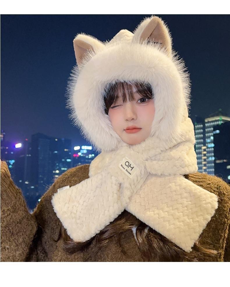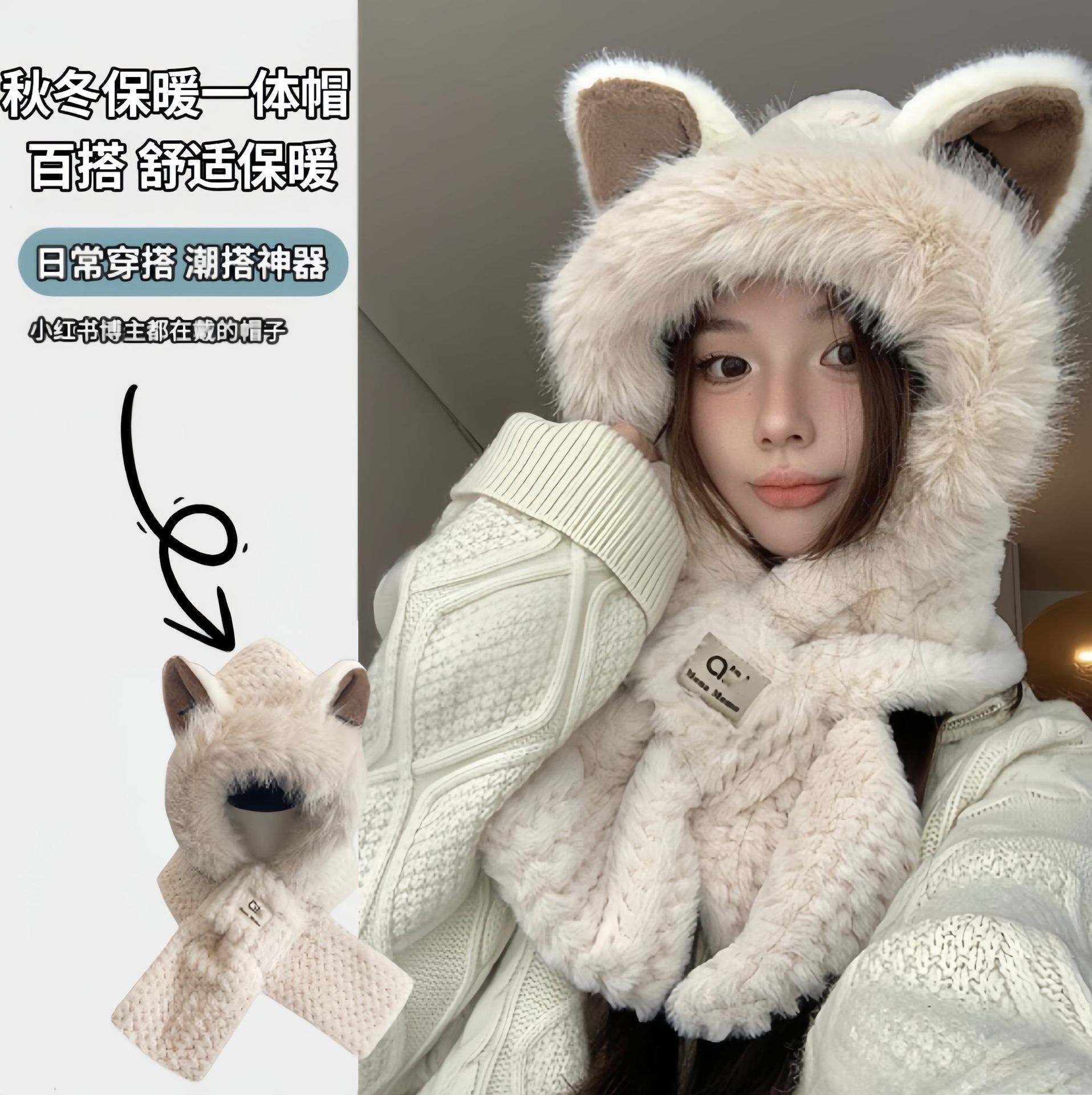 Шапка, милый зимний шарф с лисьими ушками, утолщенный цельный шарф на шею, зимний теплый шарф для защиты ушей, осень и зима
