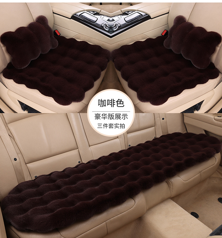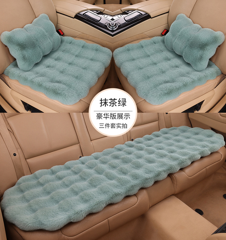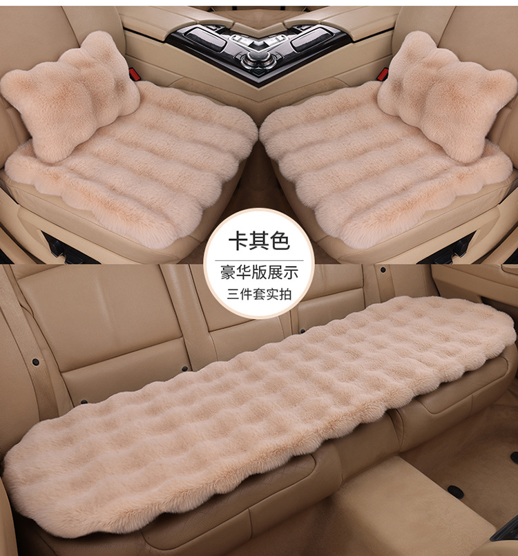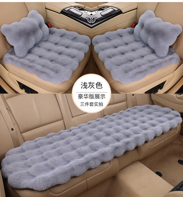 Temu Amazon Автомобильная подушка зимняя новая пуховая автомобильная подушка кролик плюшевый без спинки набор из трех частей