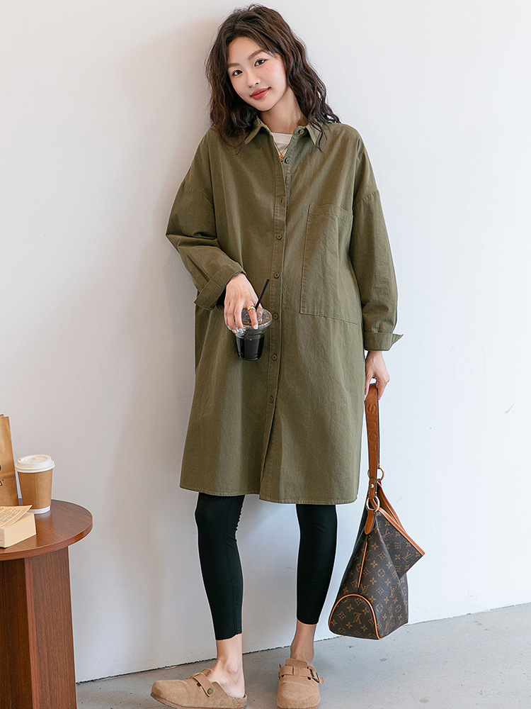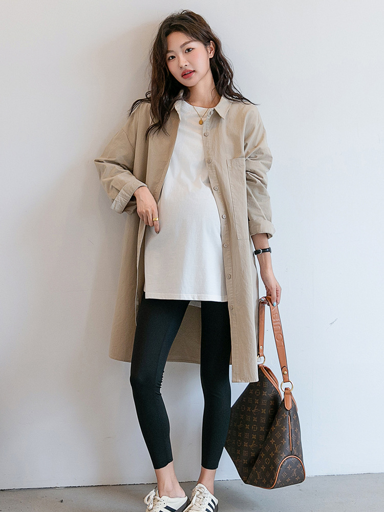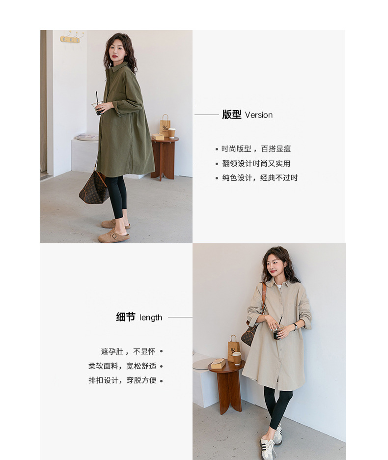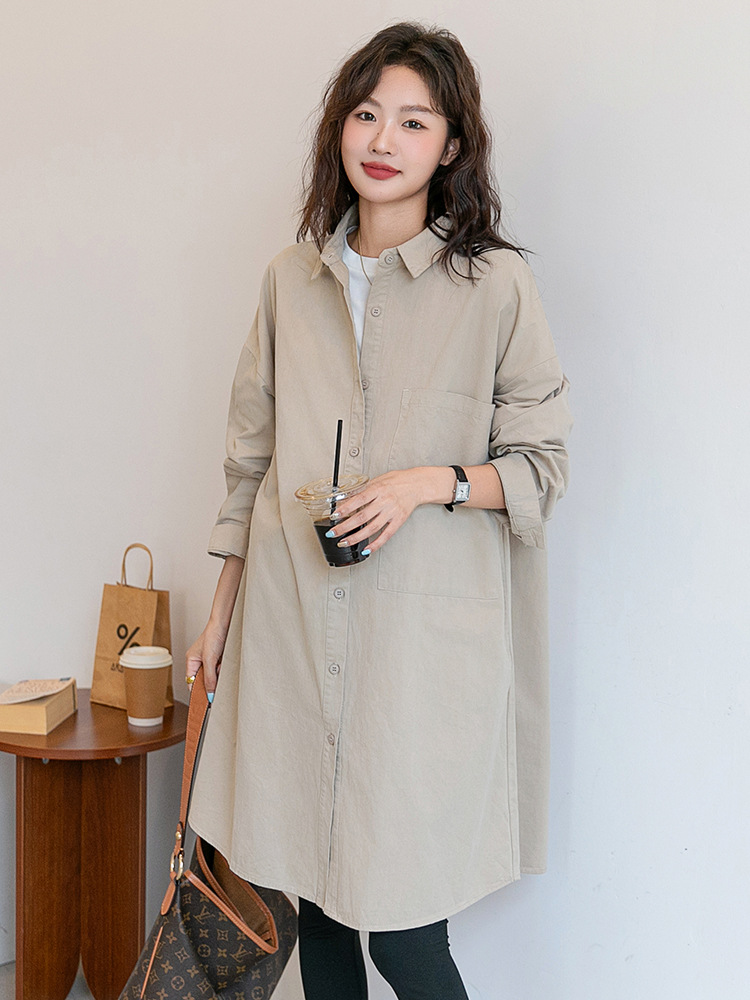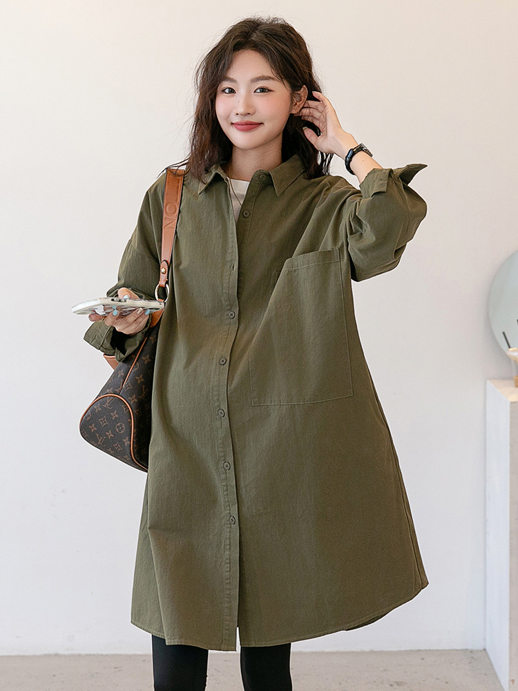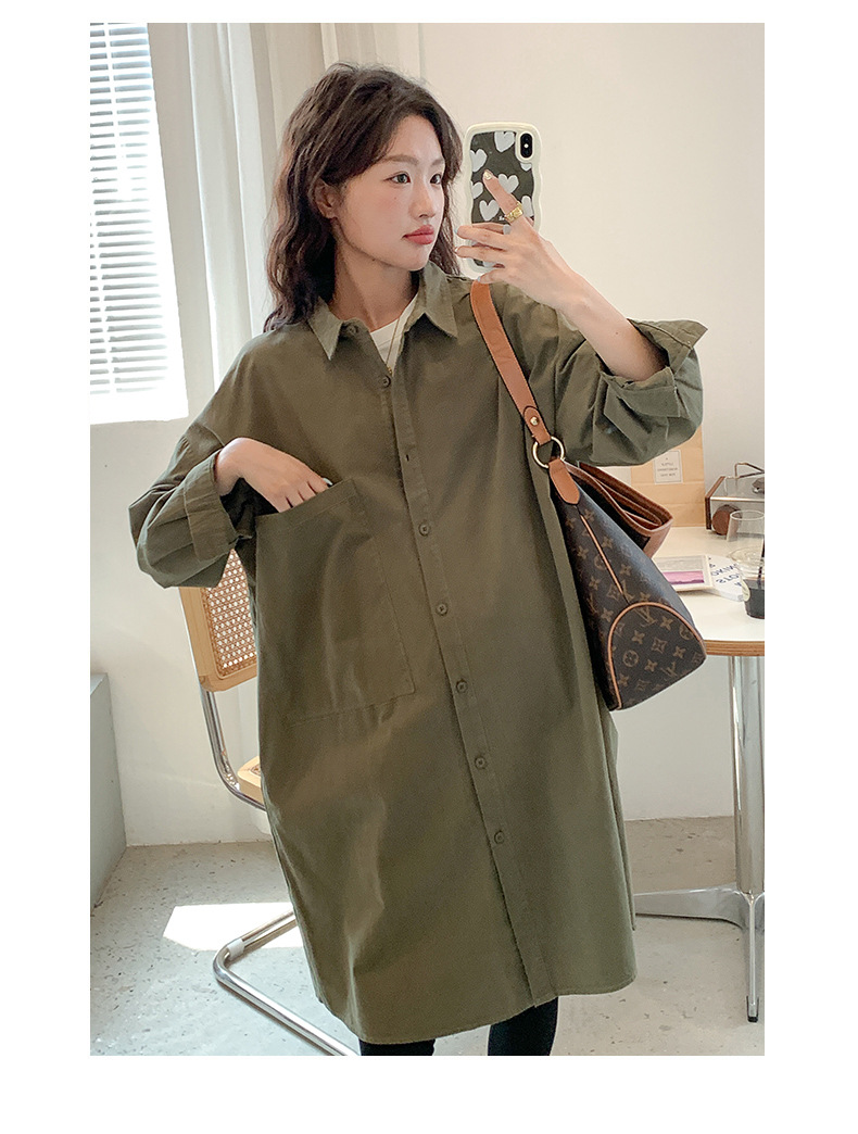 Осенняя и зимняя длинная одежда для беременных корейская версия повседневная рубашка для беременных юбка свободные большие размеры отворот длинный рукав пальто с длинными рукавами