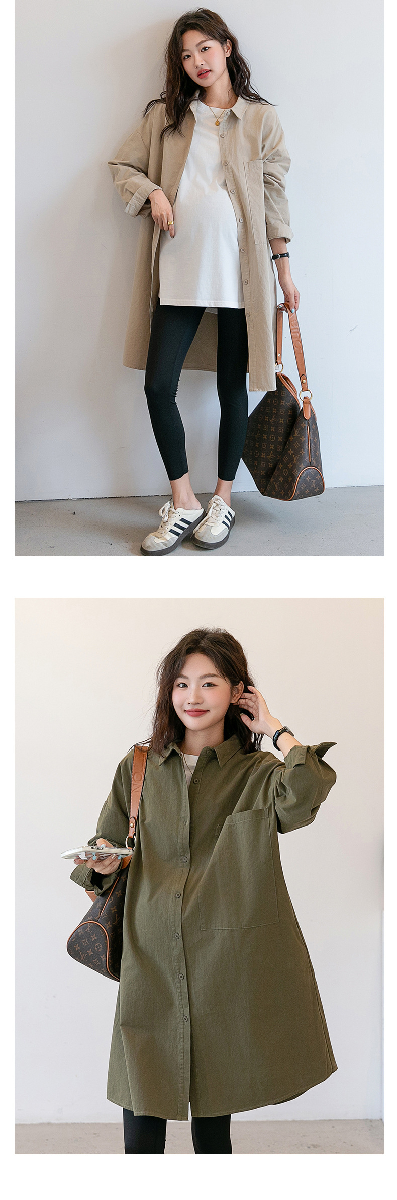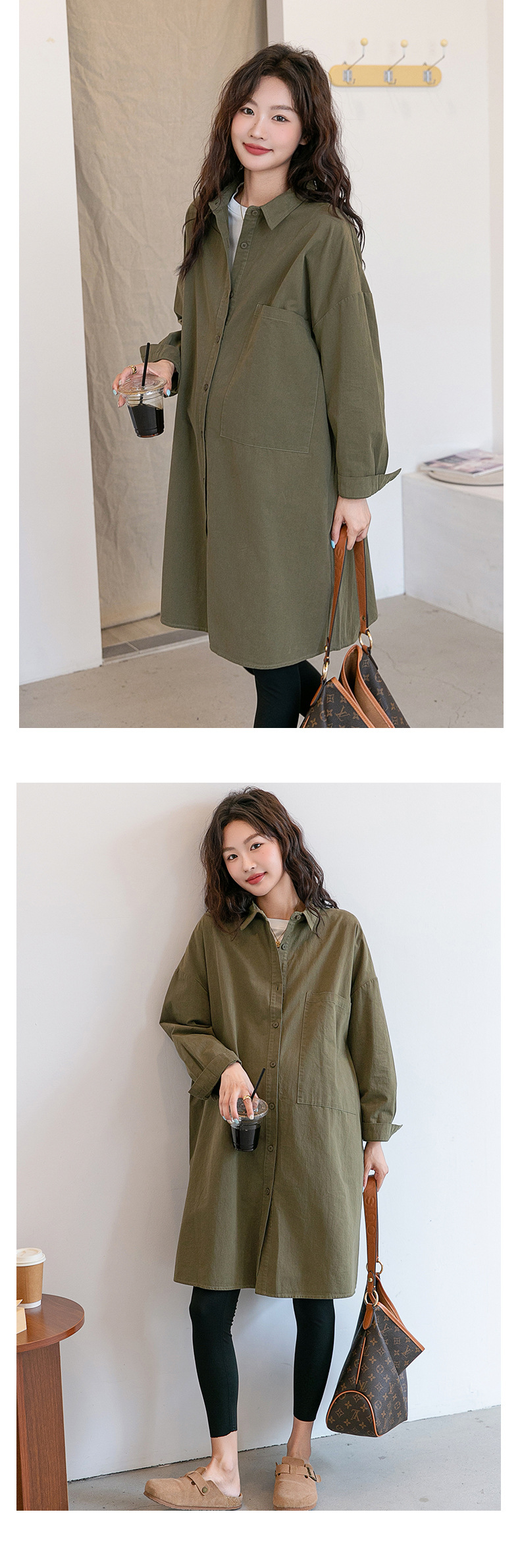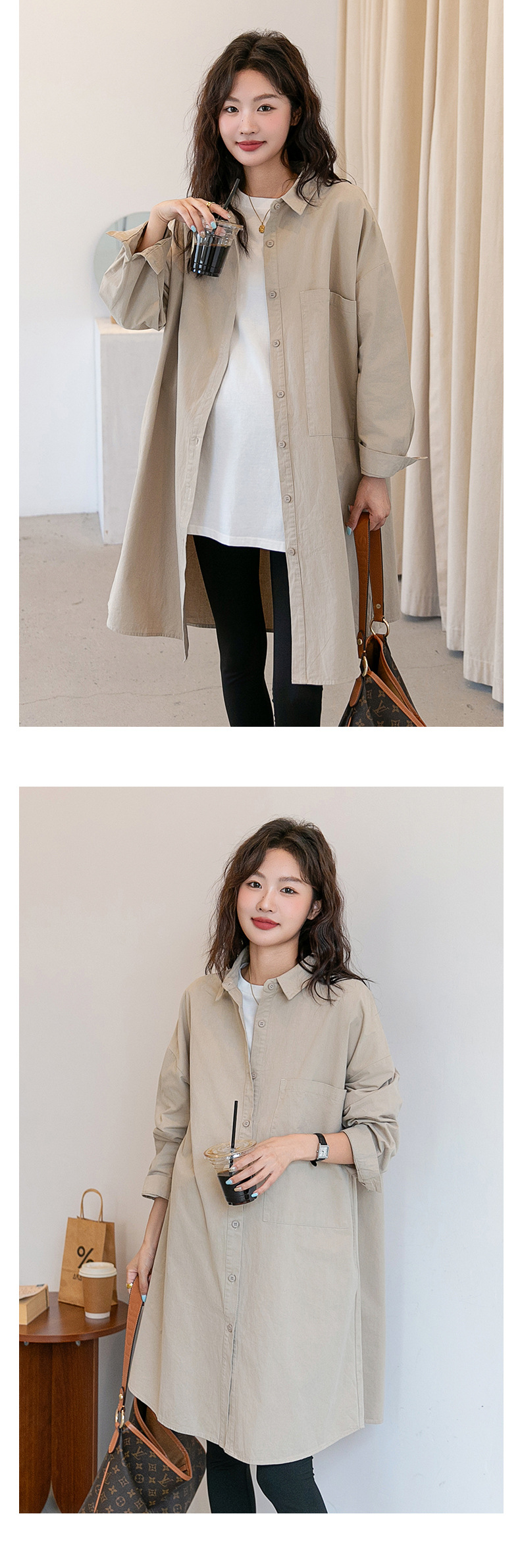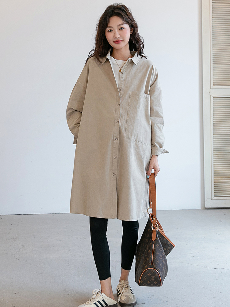 Осенняя и зимняя длинная одежда для беременных корейская версия повседневная рубашка для беременных юбка свободные большие размеры отворот длинный рукав пальто с длинными рукавами