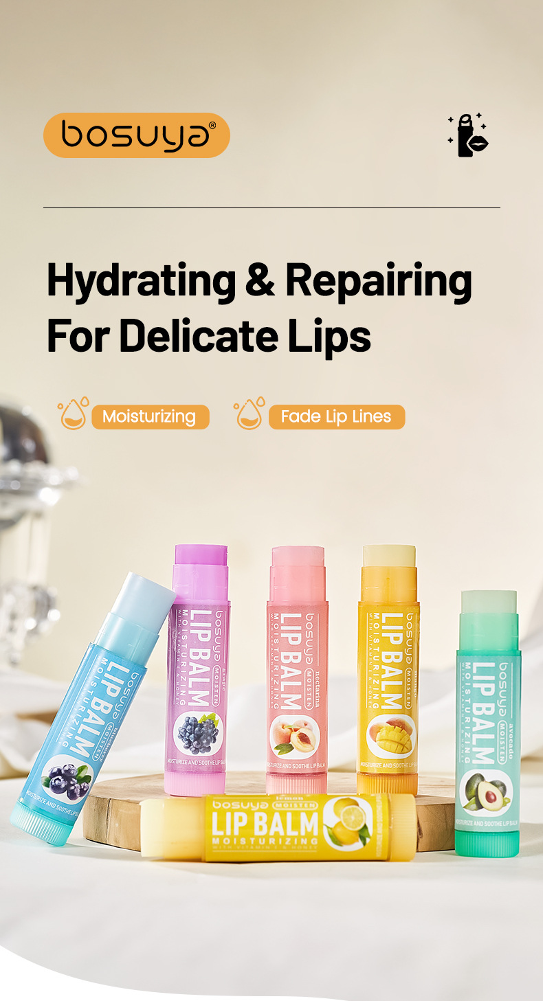 Трансграничный набор бальзама для губ с фруктовым вкусом Bosuya Увлажняющий губы Уход за сухой потрескавшейся легкой увлажняющей помадой