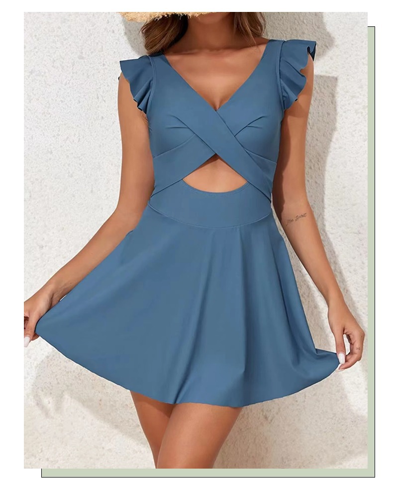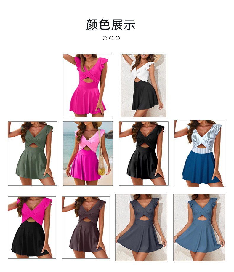 Трансграничный взрывной цельный купальник женский с оборками скрещенный юбка танкини купальник Amazon внешней торговли купальник