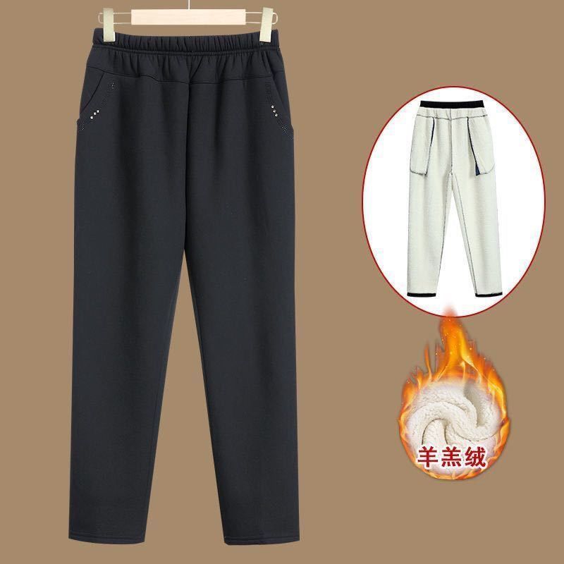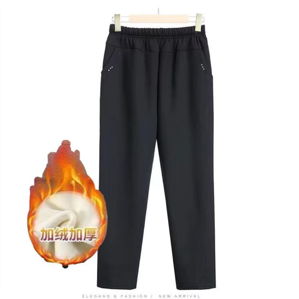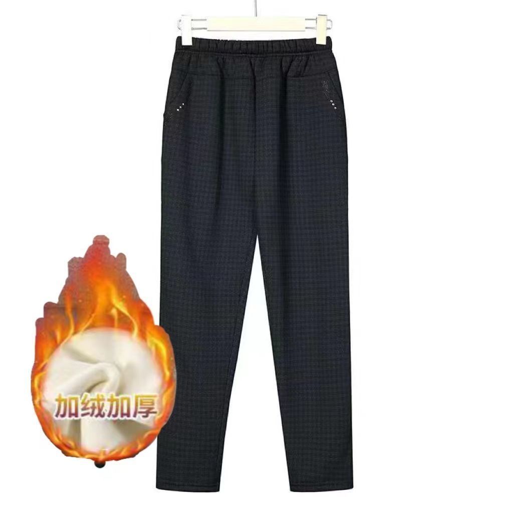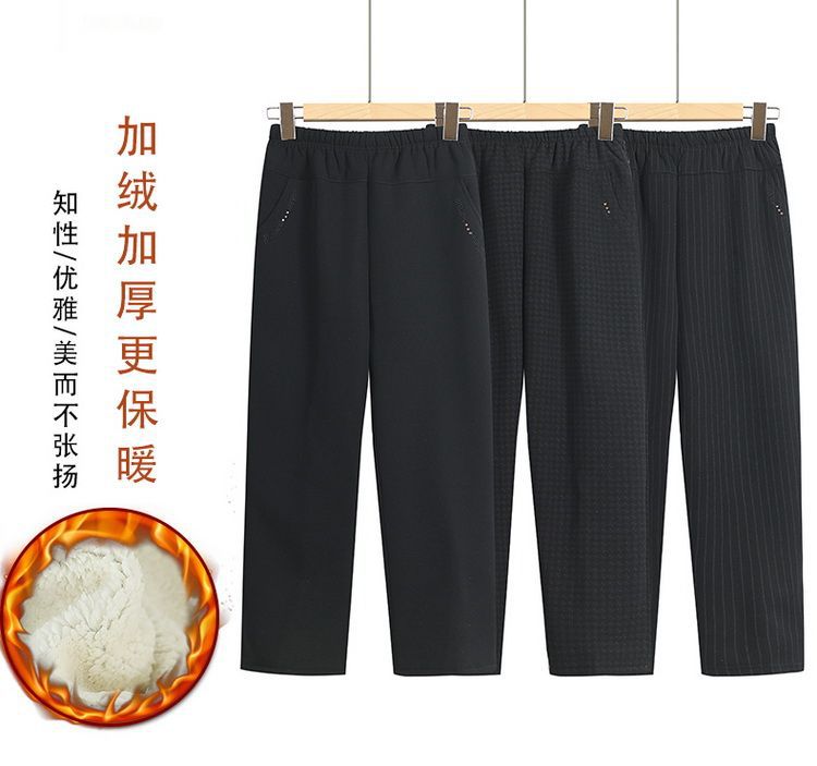 Бабушка Зимние брюки Старушка Плюшевые толстые толстые хлопчатобумажные брюки женская мама кашемир теплые эластичные брюки