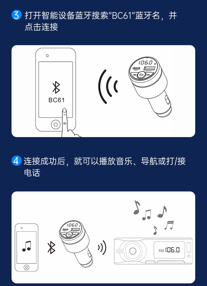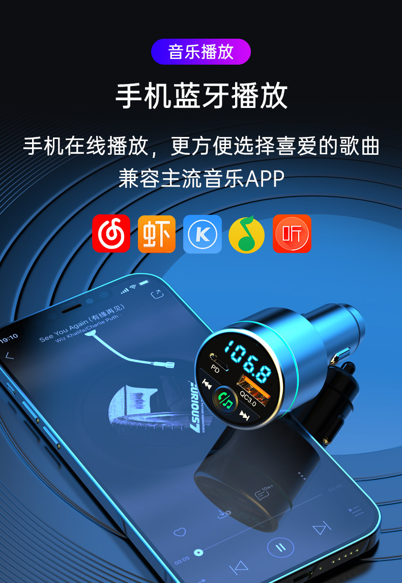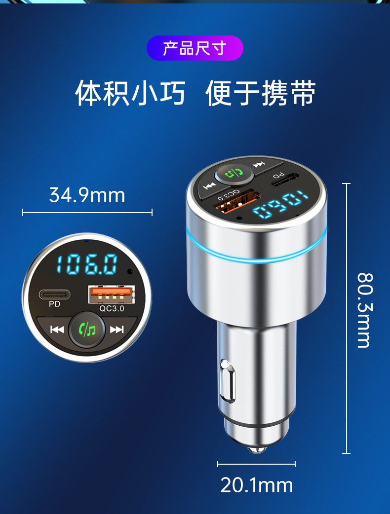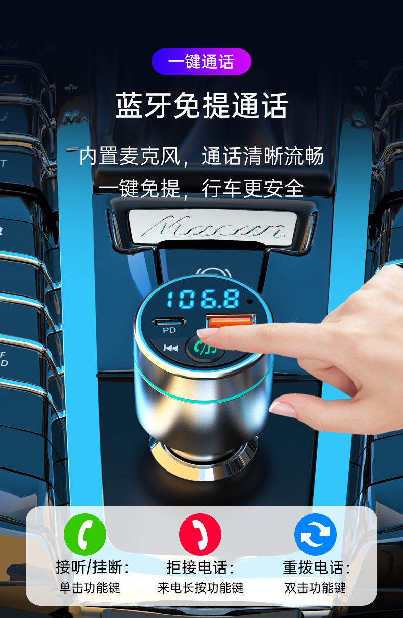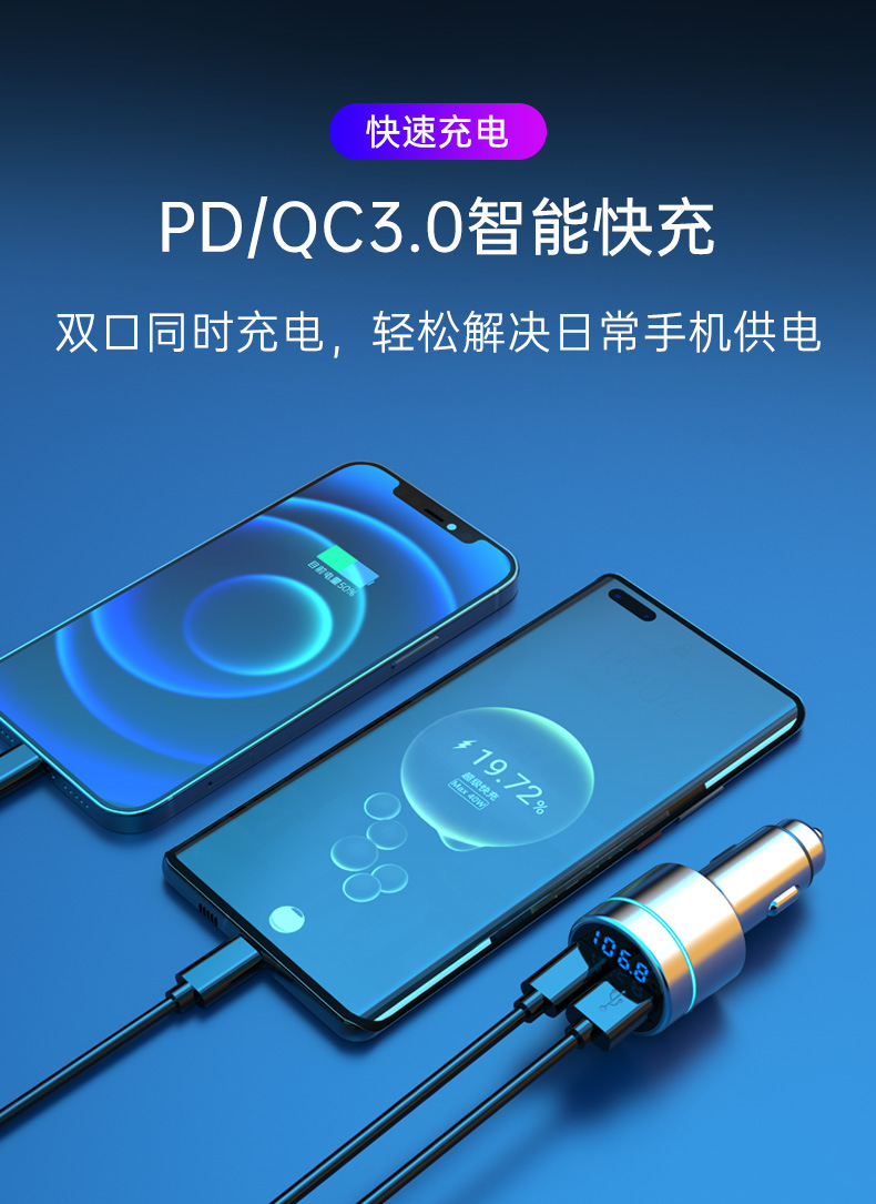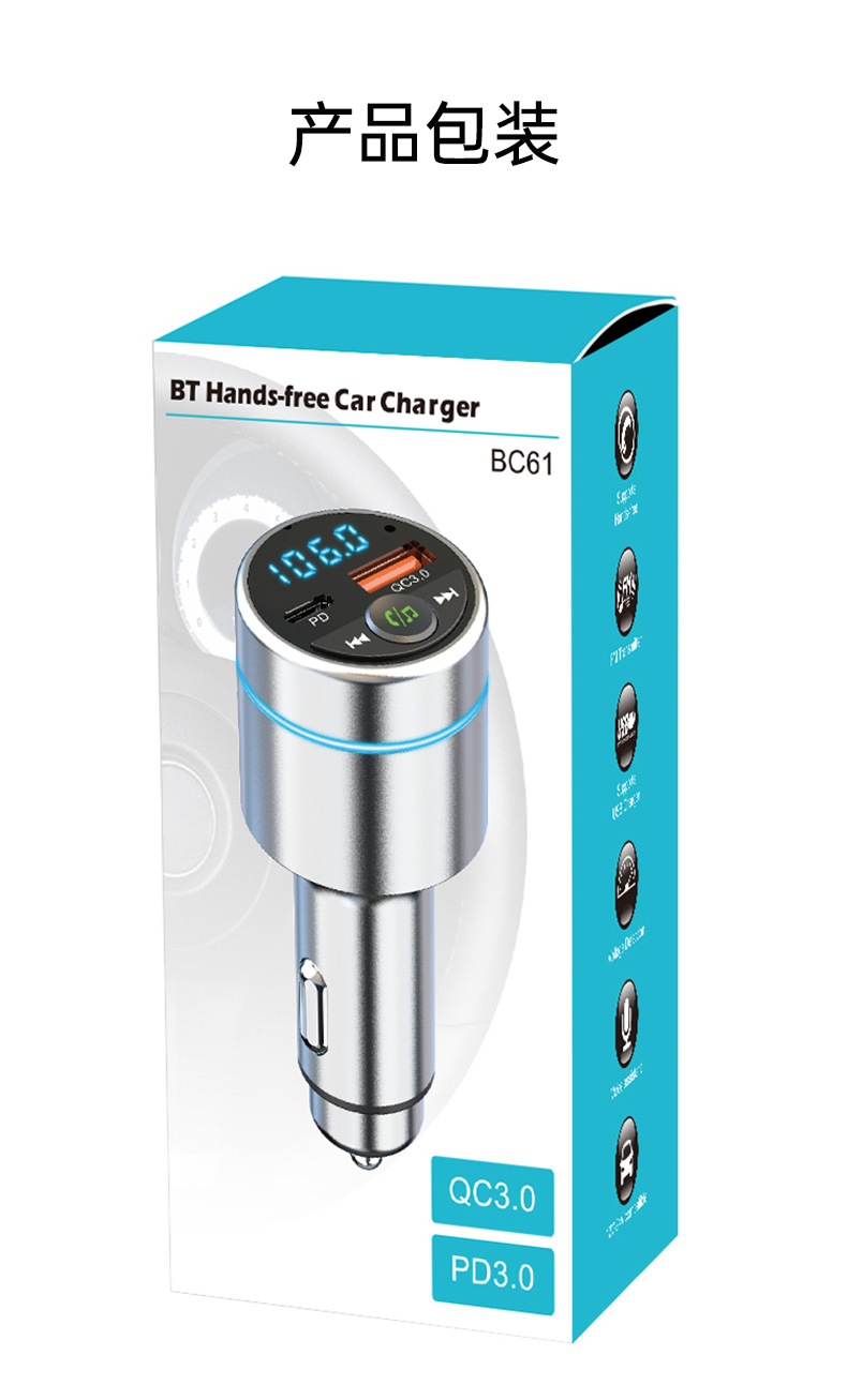 Автомобильный Bluetooth-передатчик BC61, MP3-плеер для автомобиля, корпус из цинкового сплава, быстрая зарядка, FM-трансмиттер