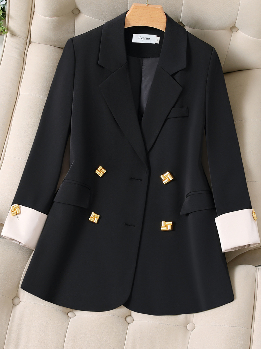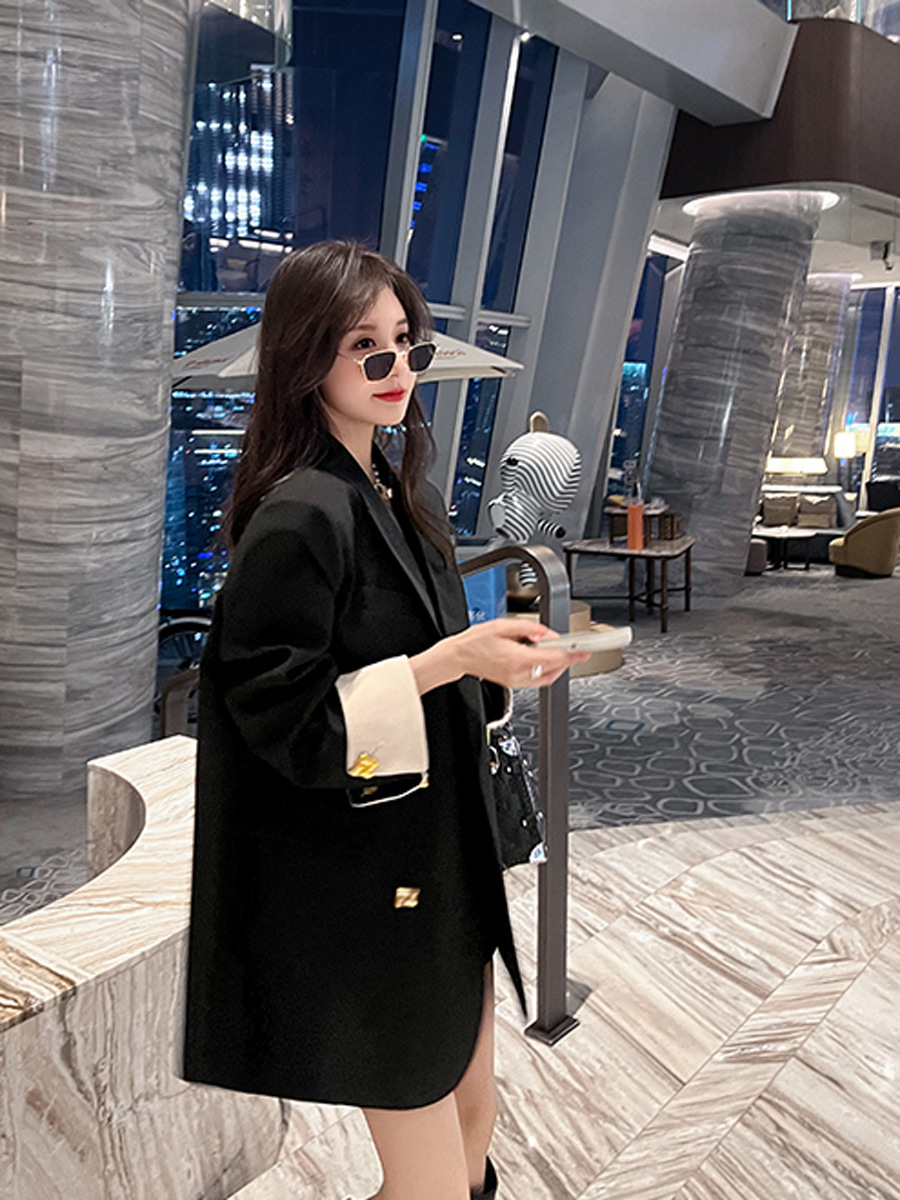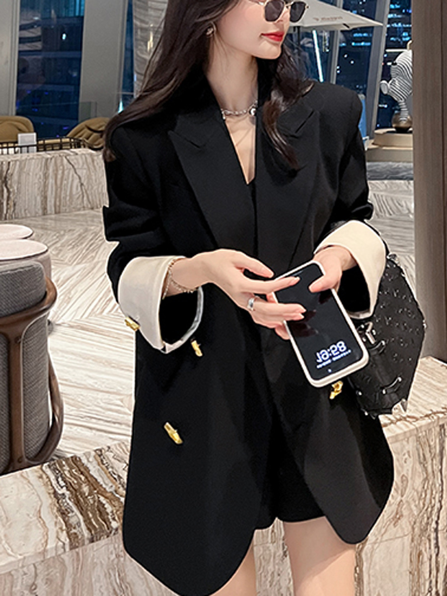Женский черный блейзер MX01 большого размера, новая модель весна 2026, свободный крой, элегантный, повседневный деловой пиджак
