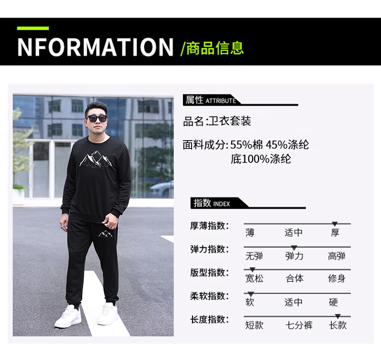 DW1005-DK2005 большой размер 400 кг спортивный хлопок высокого роста длинная версия набор толстых свитерских брюк мужской