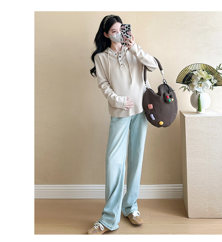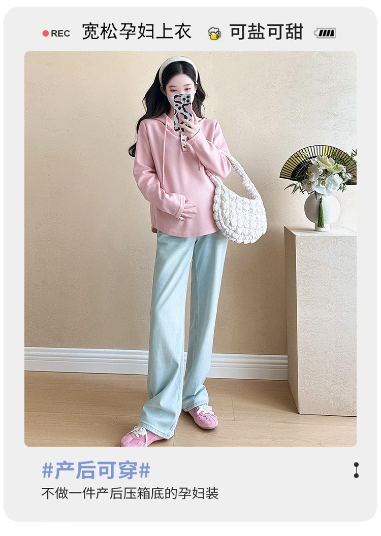 Верхняя одежда для беременных Весенний и осенний прилив мама новая корейская версия свободного маленького человека, дикий повседневный тонкий свиток с капюшоном