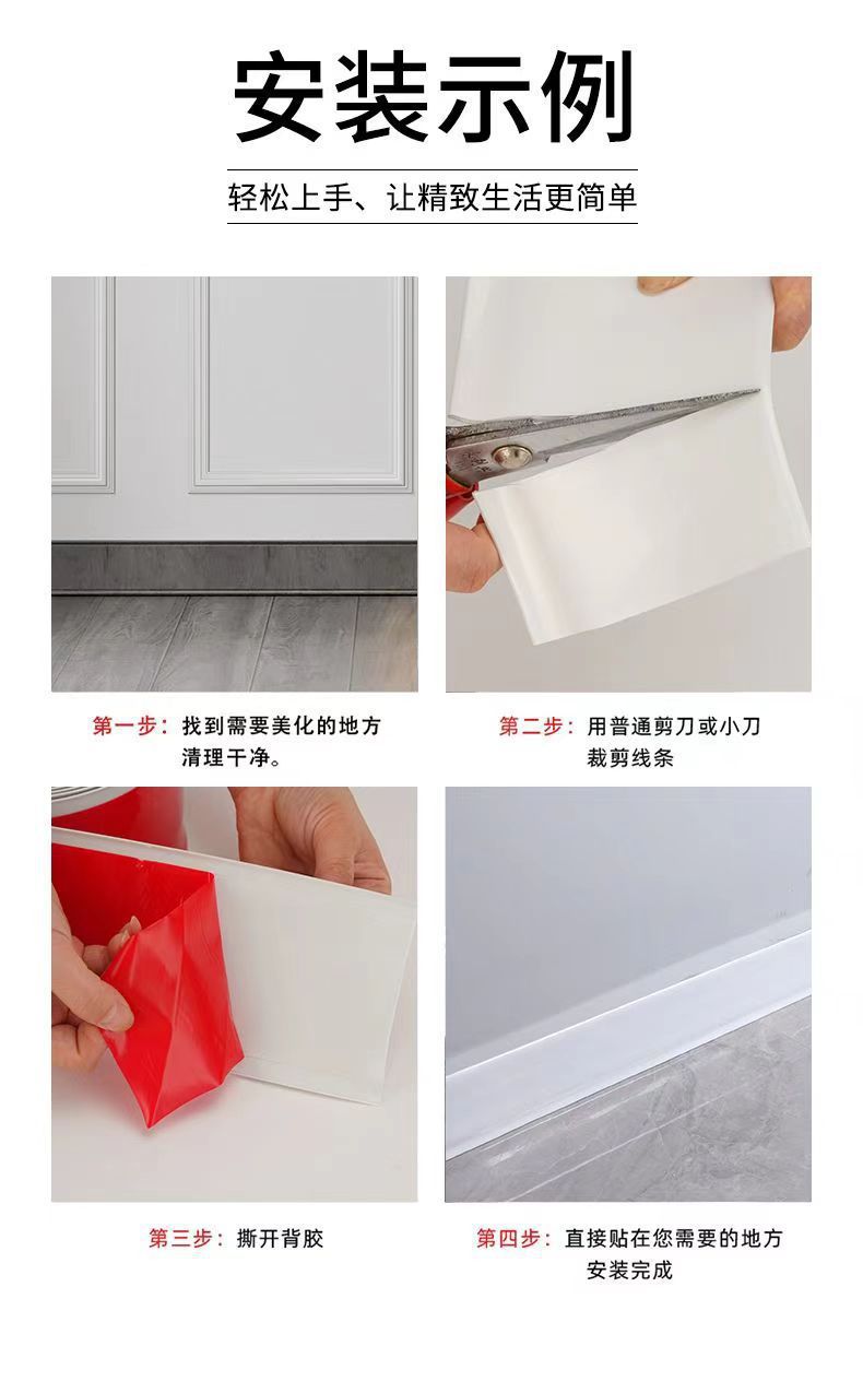 Заводская поставка трансграничный ПВХ пластик экологически чистый самоклеящийся мягкий плинтан водонепроницаемый обвязки юбка стены угловая линия