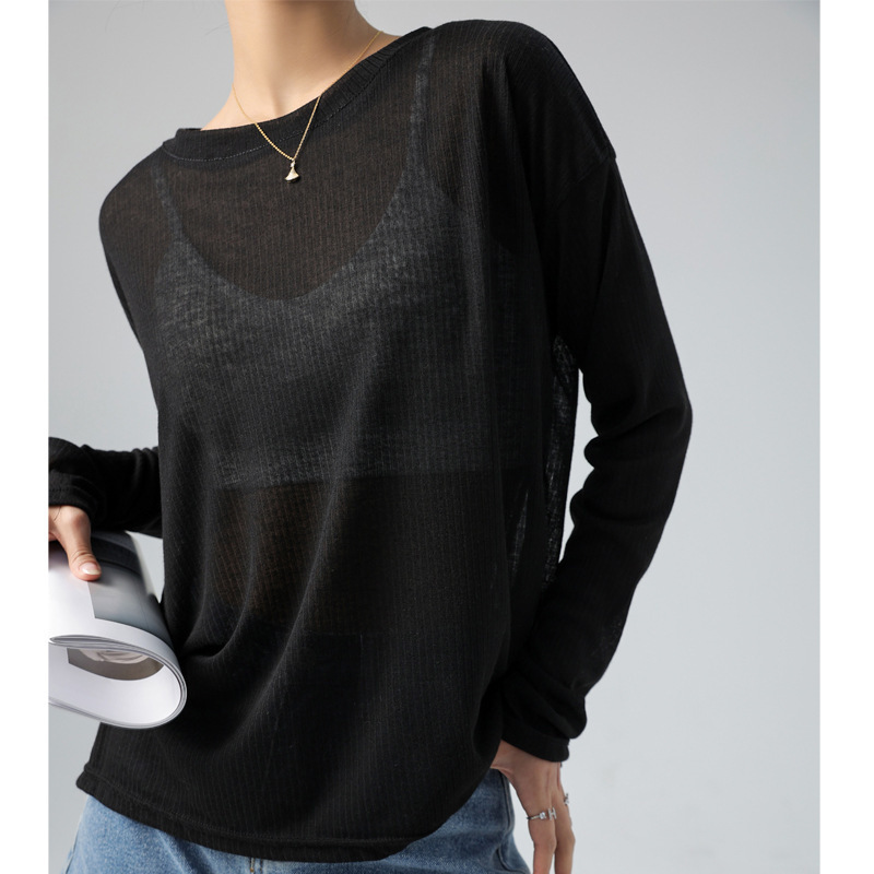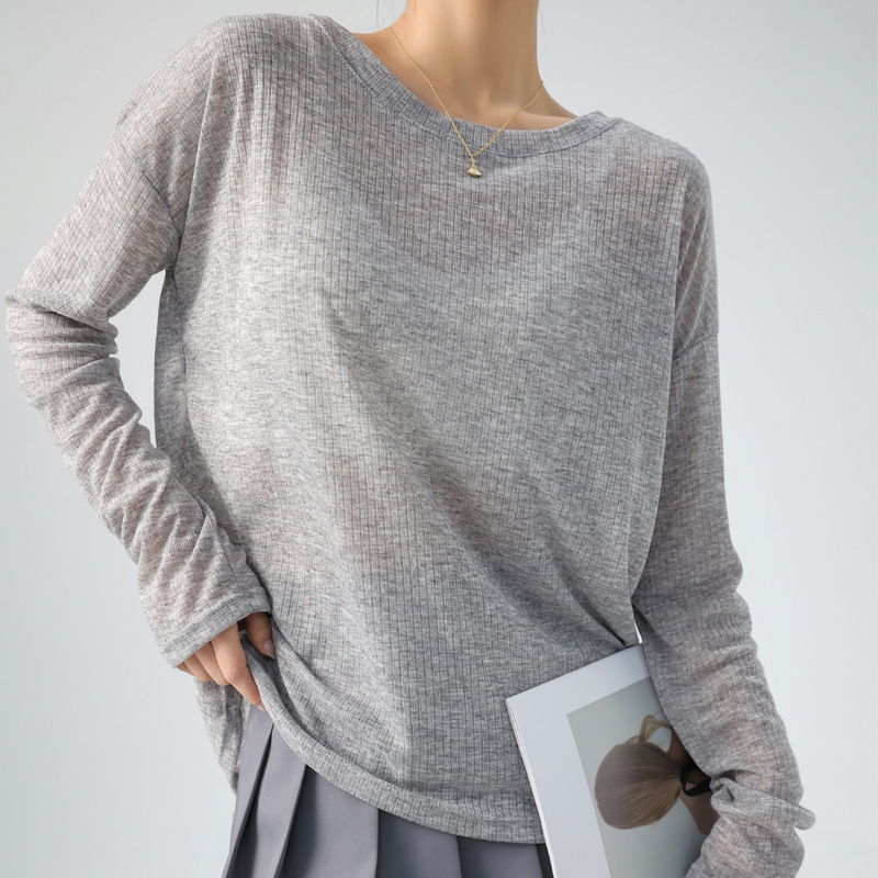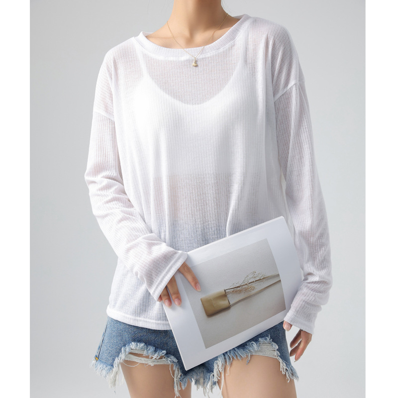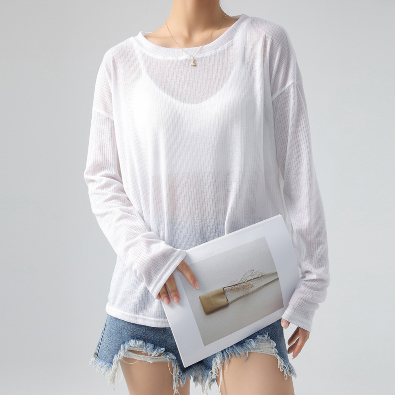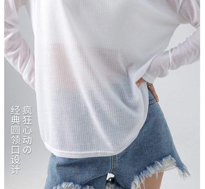 Корейская версия ins дикая белая футболка с длинными рукавами женская свободная перспектива тонкий весенний ледяной свитер свитер блузка