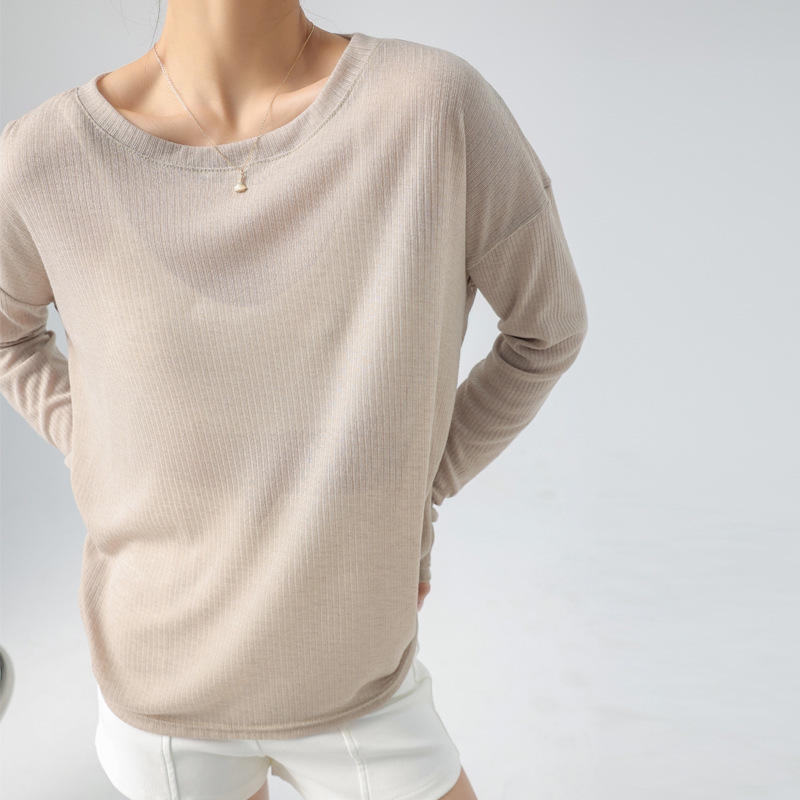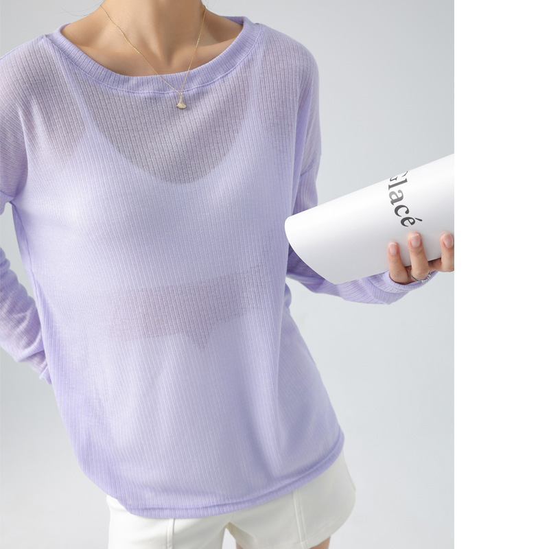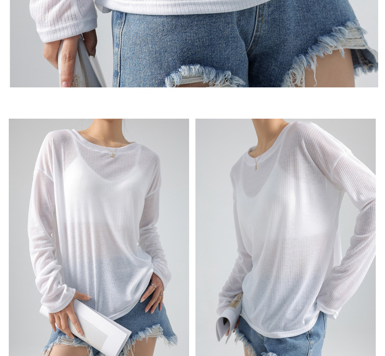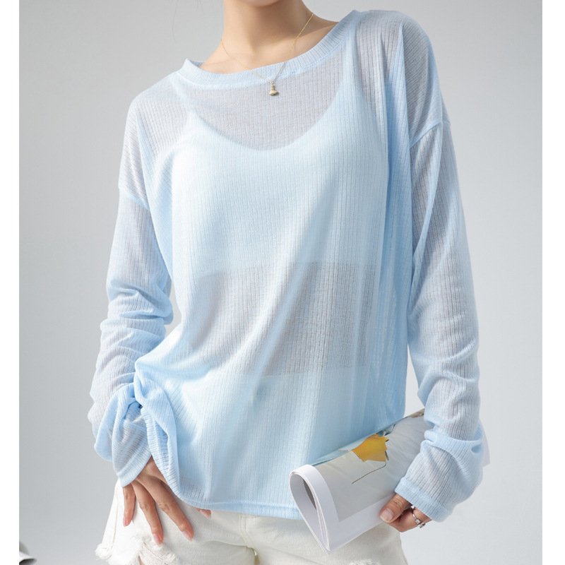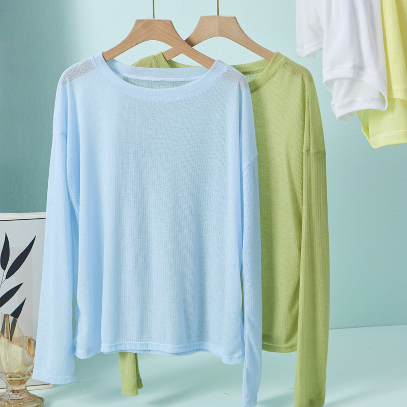 Корейская версия ins дикая белая футболка с длинными рукавами женская свободная перспектива тонкий весенний ледяной свитер свитер блузка